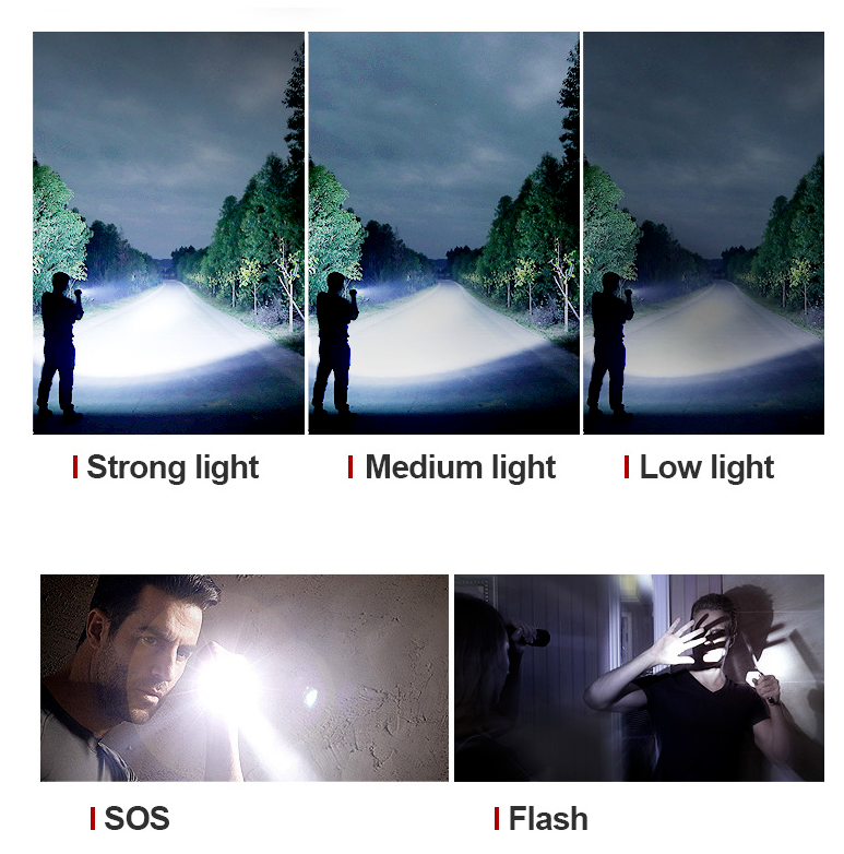 11. 5 Light Modes: High/Mid/Low/Strobe/SOS