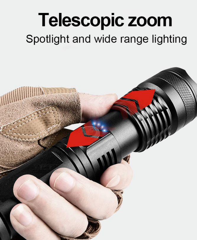 【Super Bright Flashlight】Our tactical flashlight utilizes the durable XHP70 LED chip,provides poweful light, 8 times brighter than flashlight.Max beam distance up to 500 meters (1640ft).With a lifetime up to 50,000 hours.Attention:You need get it fully charged before use.please make sure the battery "+" face the inside.