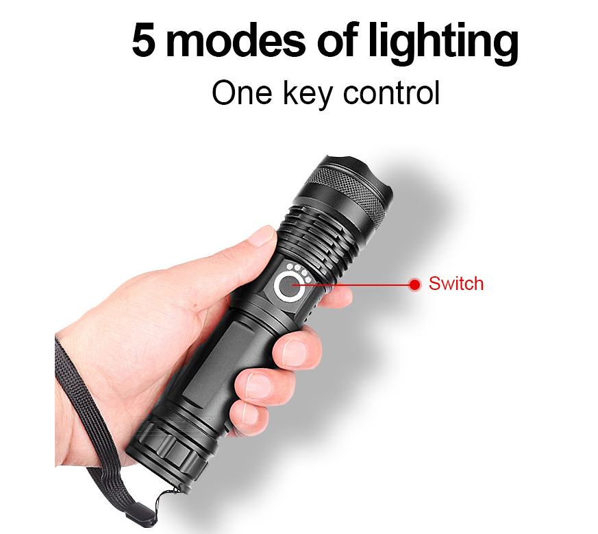 【5 Modes Flashlight】Features with 5 different modes:High,Medium,Low,Strobe,SOS.Easy to change modes by pressing the switch button gently.Mini size fits in your hand or pocket,backpack, survival bag,or car glove compartment.
