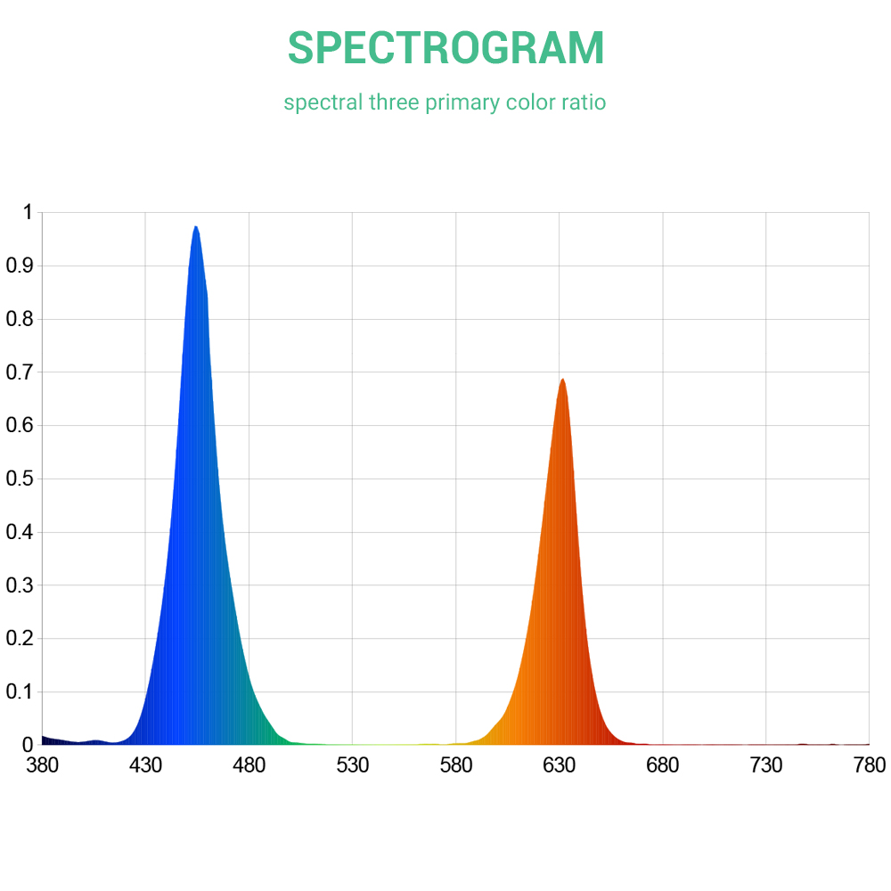 Wavelength: Red light 620-625nm, blue light 450-455nm
