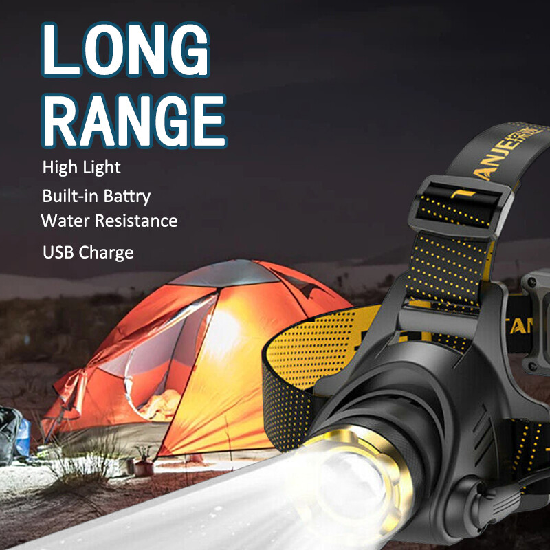 LED Headlamp Rechargeable Head Torch Zoom Headlight Lamp Powerful Flashlight Fishling Driving Camping Light With 3 Modes Work Light