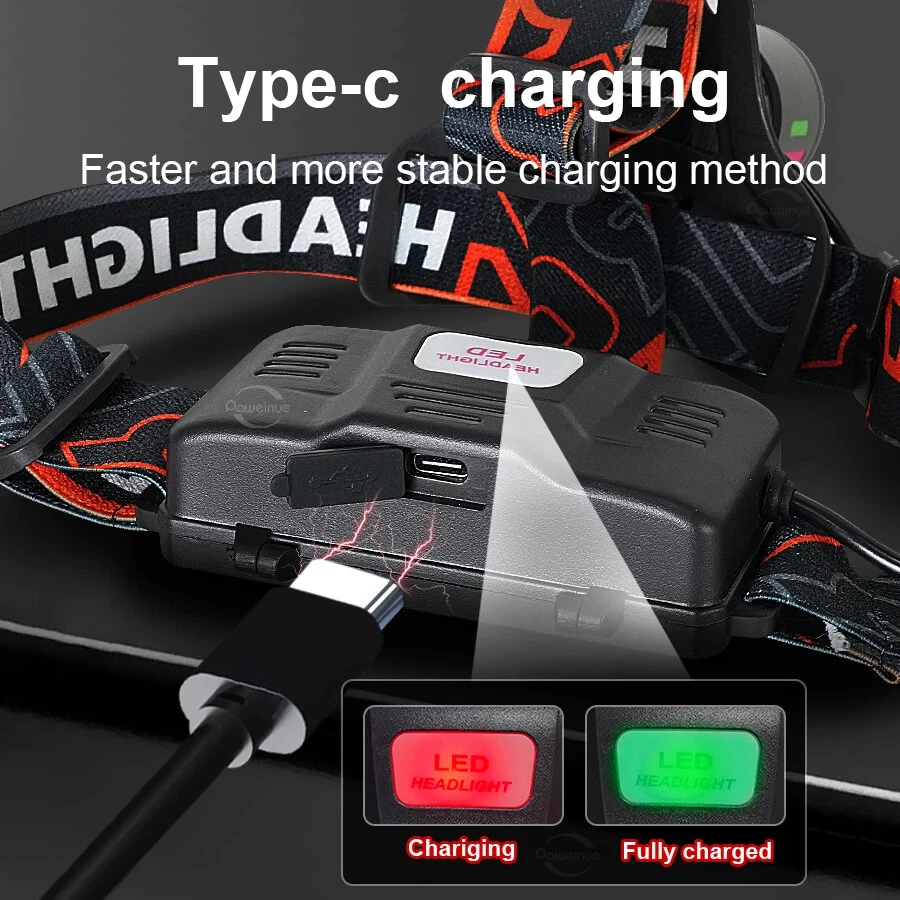 6. USB-C POWER INPUT: Super bright headlamp comes with 2 x rechargeable batteries make it convenient to be charged from car, computer, power bank, USB charging plug.