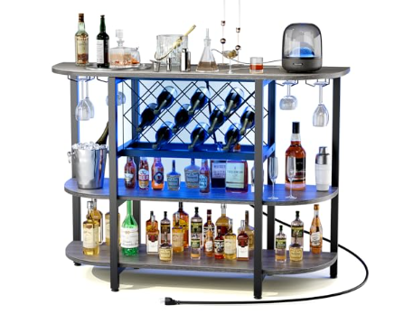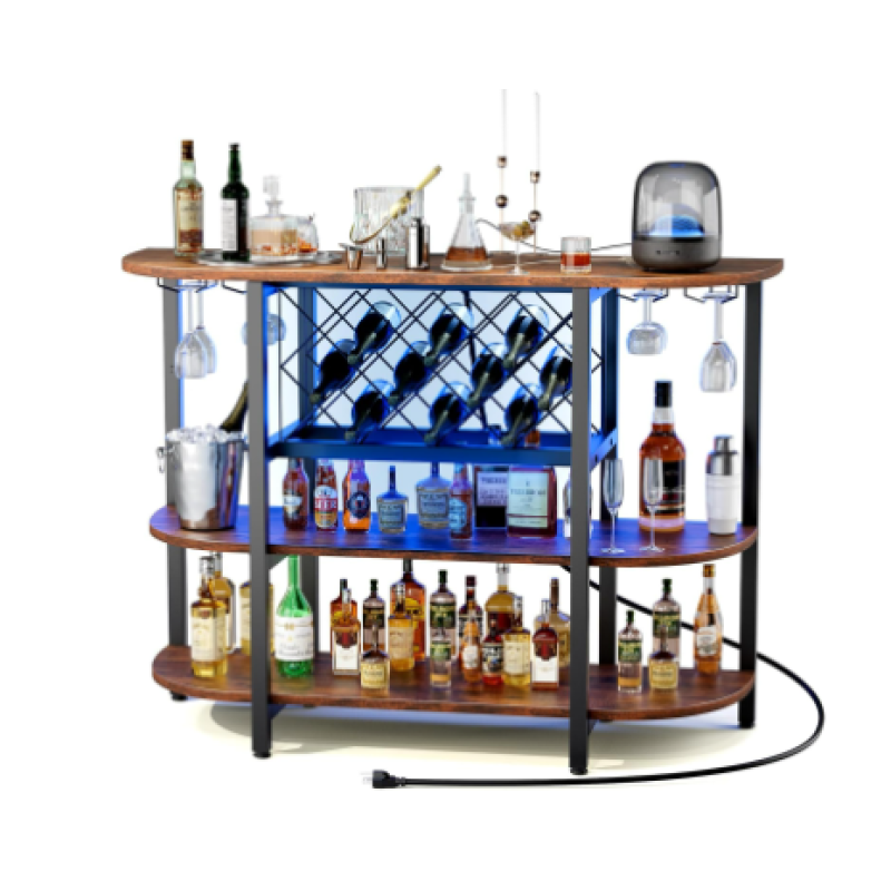 The family bar cabinet adopts a heavy-duty metal frame, which is durable. Each shelf has a weight capacity of 155 pounds. You can store them with confidence.