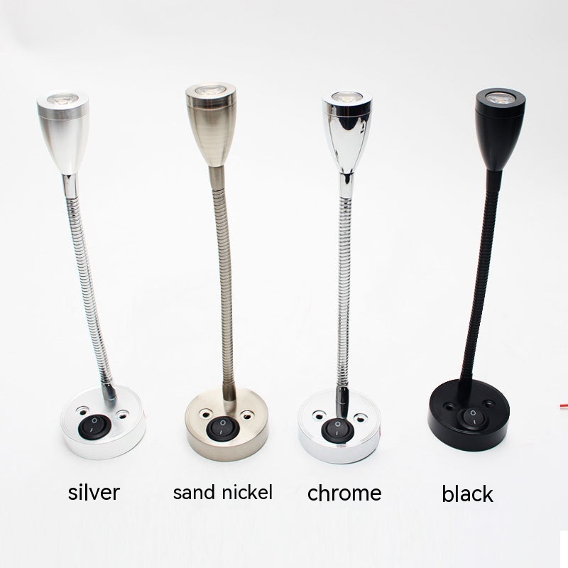 Material: aluminum lamp, aluminum pedestal, iron plated with chromium hose, acrylic lens