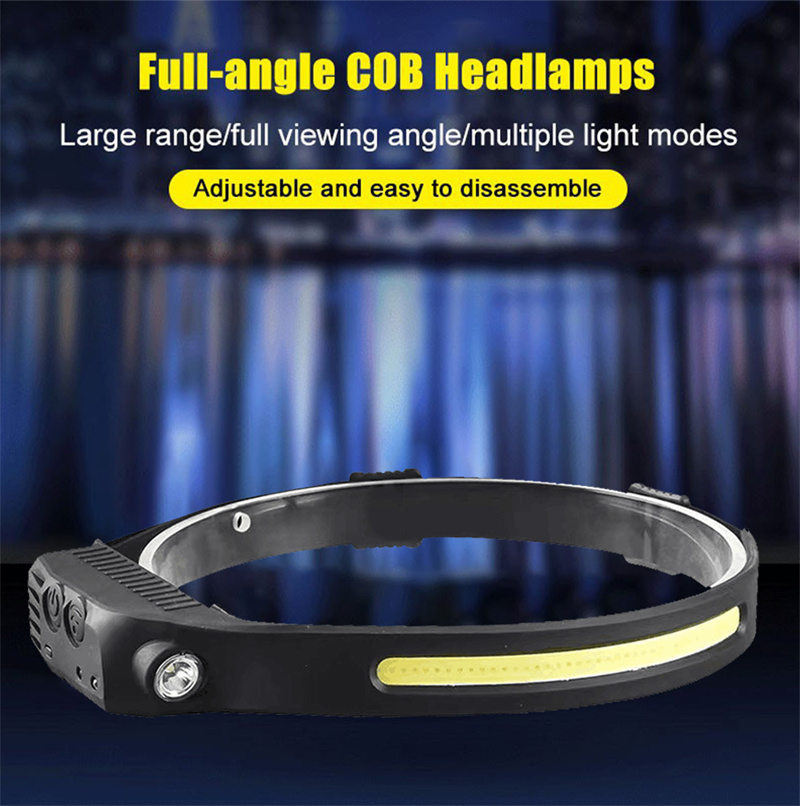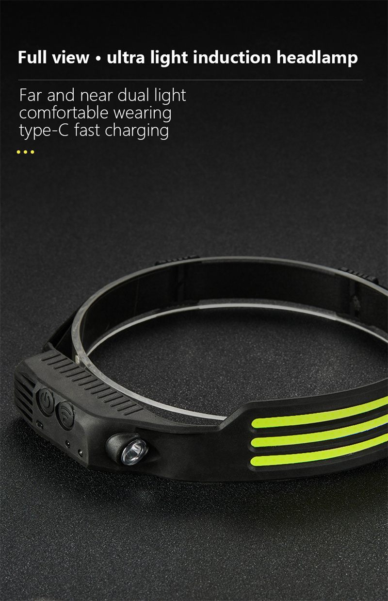1. Full view ultra-light induction headlamp: far and near dual light comfortable Wearingtypebe-c fast charging.