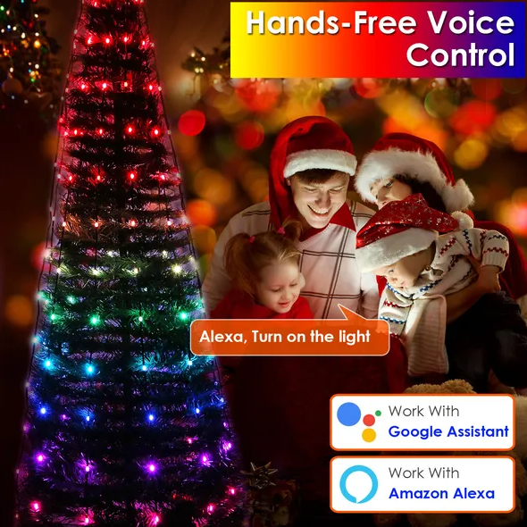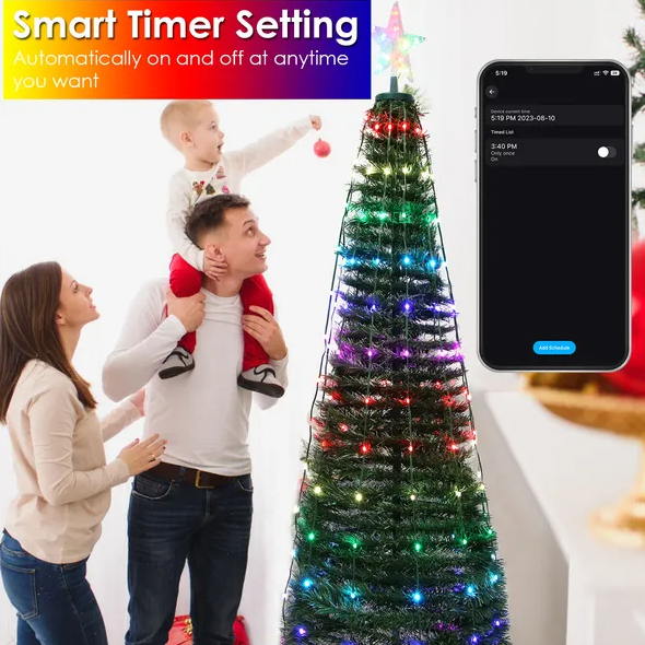 *Easy to Set Up*:No drilling,screws or other tools are needed,you can finish the installation in 3 minutes. The reusable plastic tree can be folded into compact size and is easy to store when not in use. After downloading the Surplife app and plug the light,achieve quick pairing.