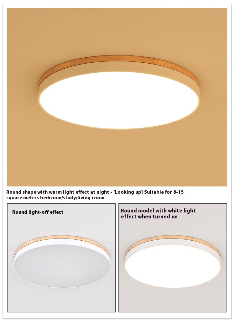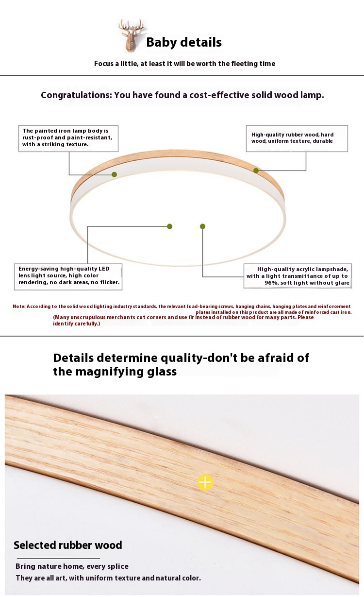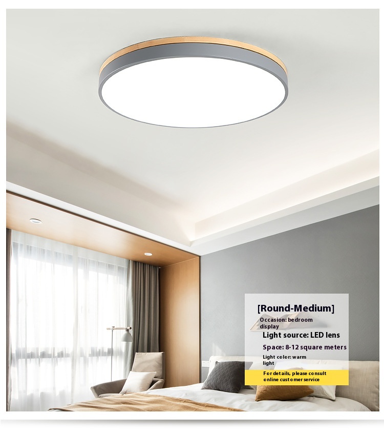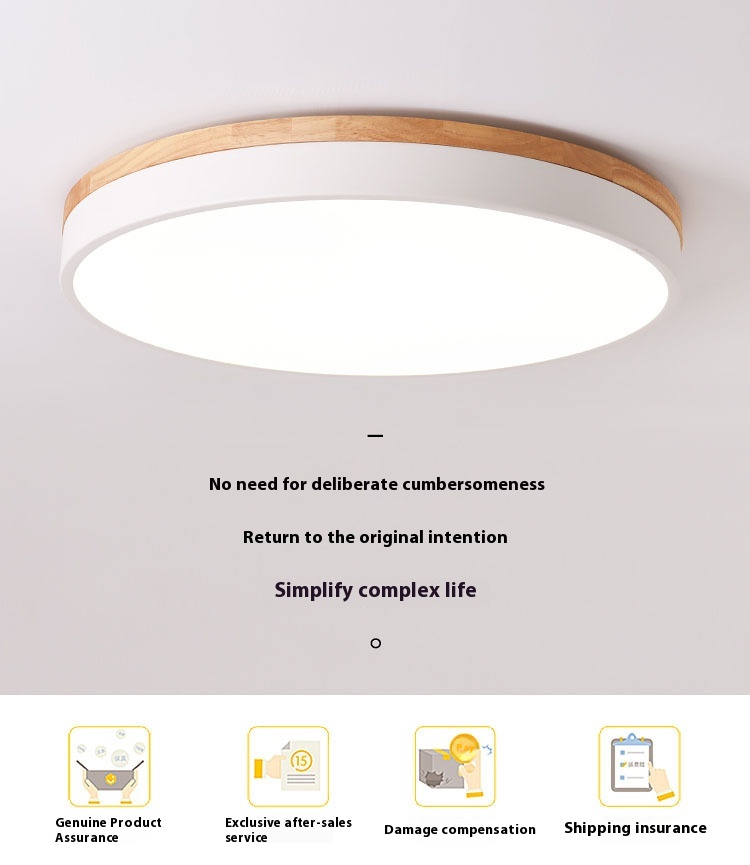 LED Living Room Solid Wood Round Ceiling Lamp