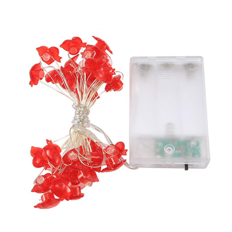 Power: 1 M 10 lights two segments long bright battery box, 2 M 20 lights two segments long bright battery box, 2 M 20 lights three sections always bright, 3 M 30 lights three sections with flash battery box, 4 m 40 lights three sections with flash battery box, 5 M 50 lights three sections with flash battery box