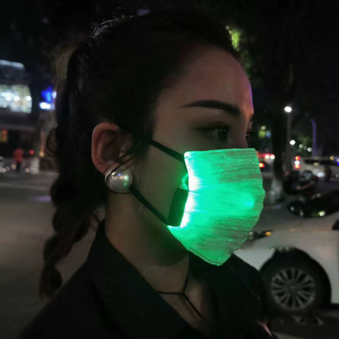 Material: optical fiber cloth + mesh cloth + LED lightSize: 17.2*14cmColor: black, whiteModeling: flat white, flat black