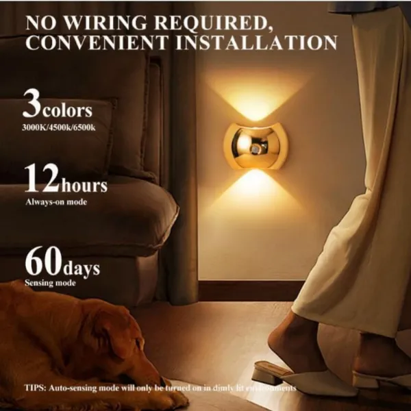 LED Modern Indoor Wall Light With Motion Sensor 3 Color Modes 2700K/4500K/6500K USB Rechargeable Magnetic Portable Wall Sconce For Living Room Bedroom 2 Packs