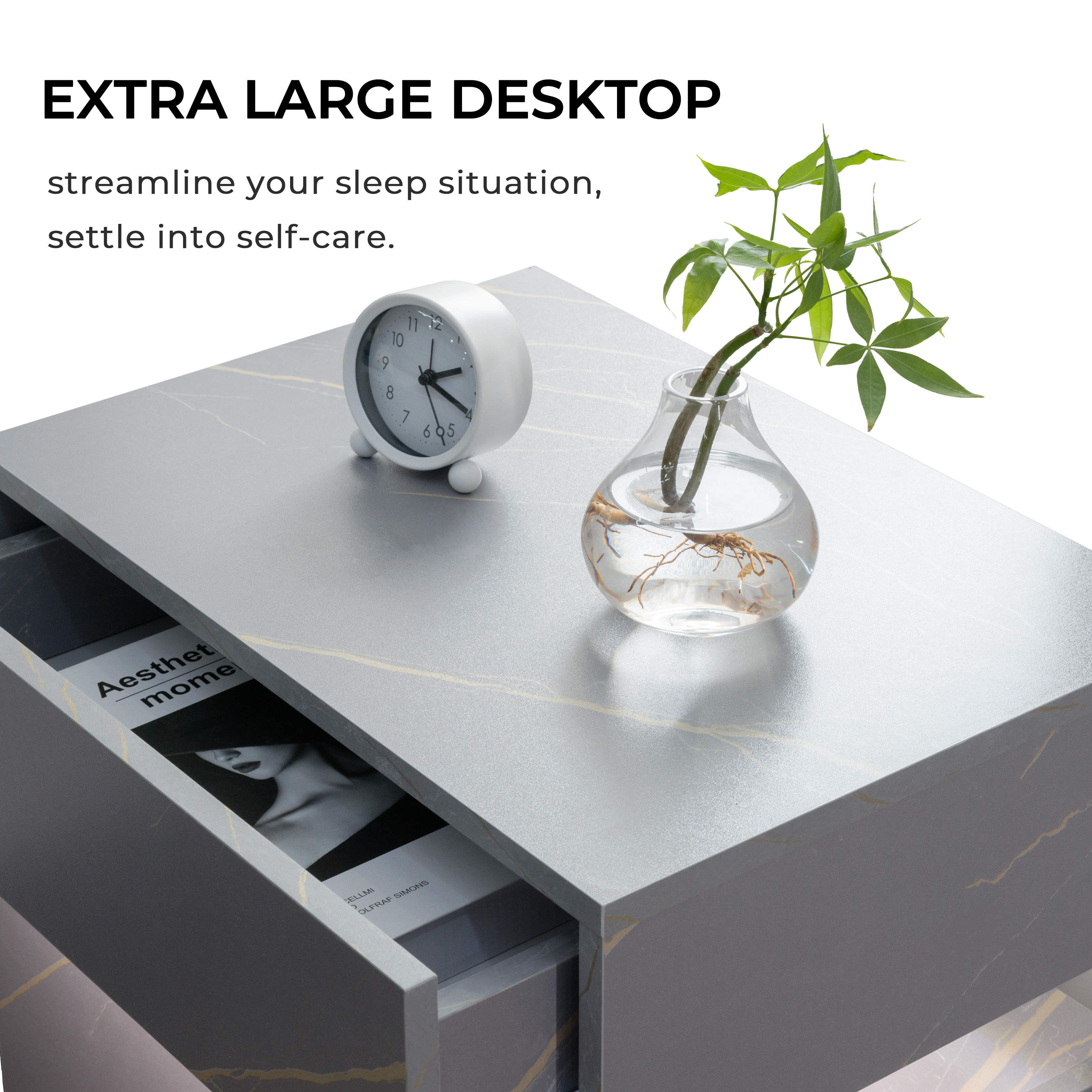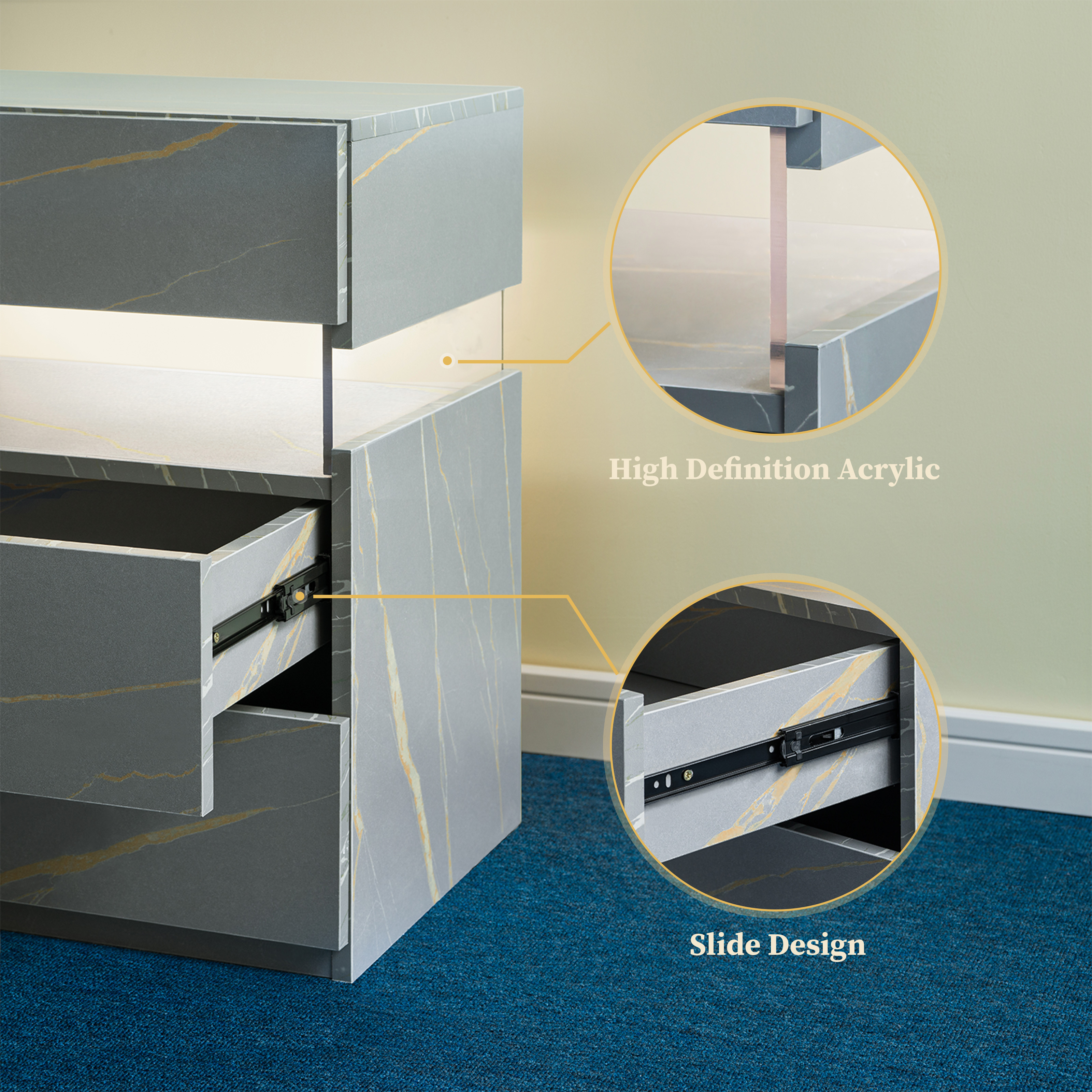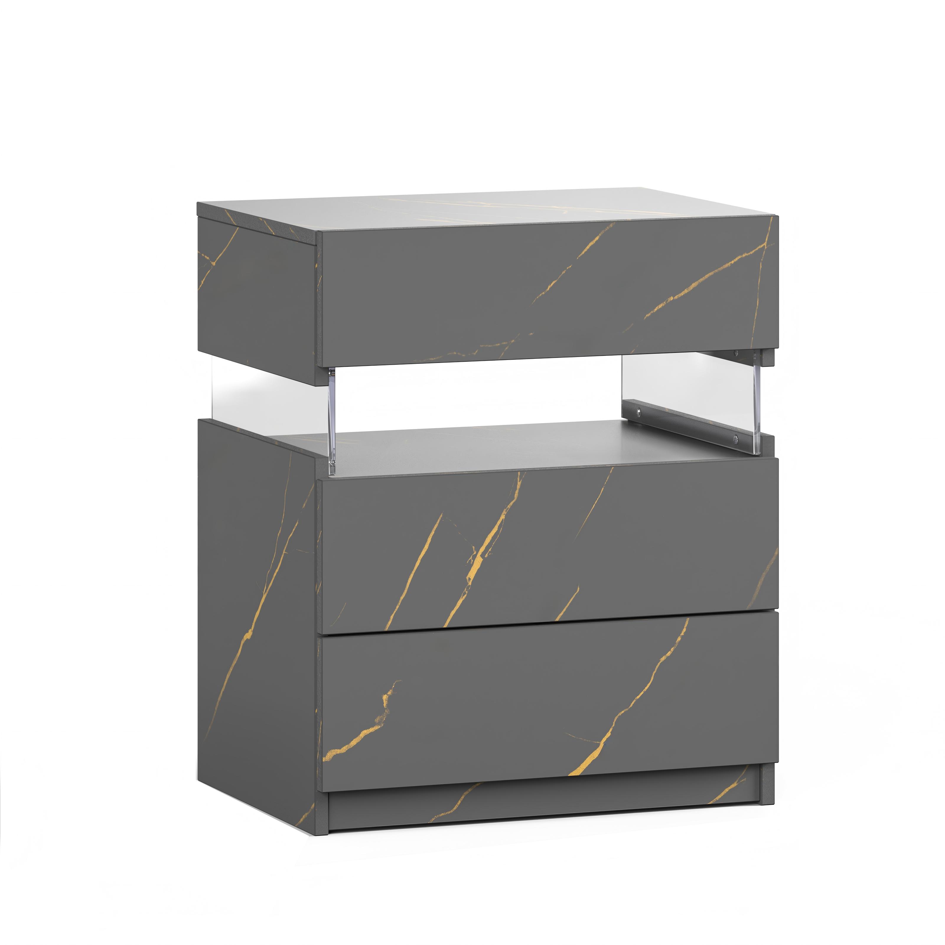 Product Name:LED Nightstands 3 Drawer Dresser for Bedroom End Table with Acrylic Board LED Bedside Tables for Bedroom Living Room Bedside Furniture (Grey+Gold)