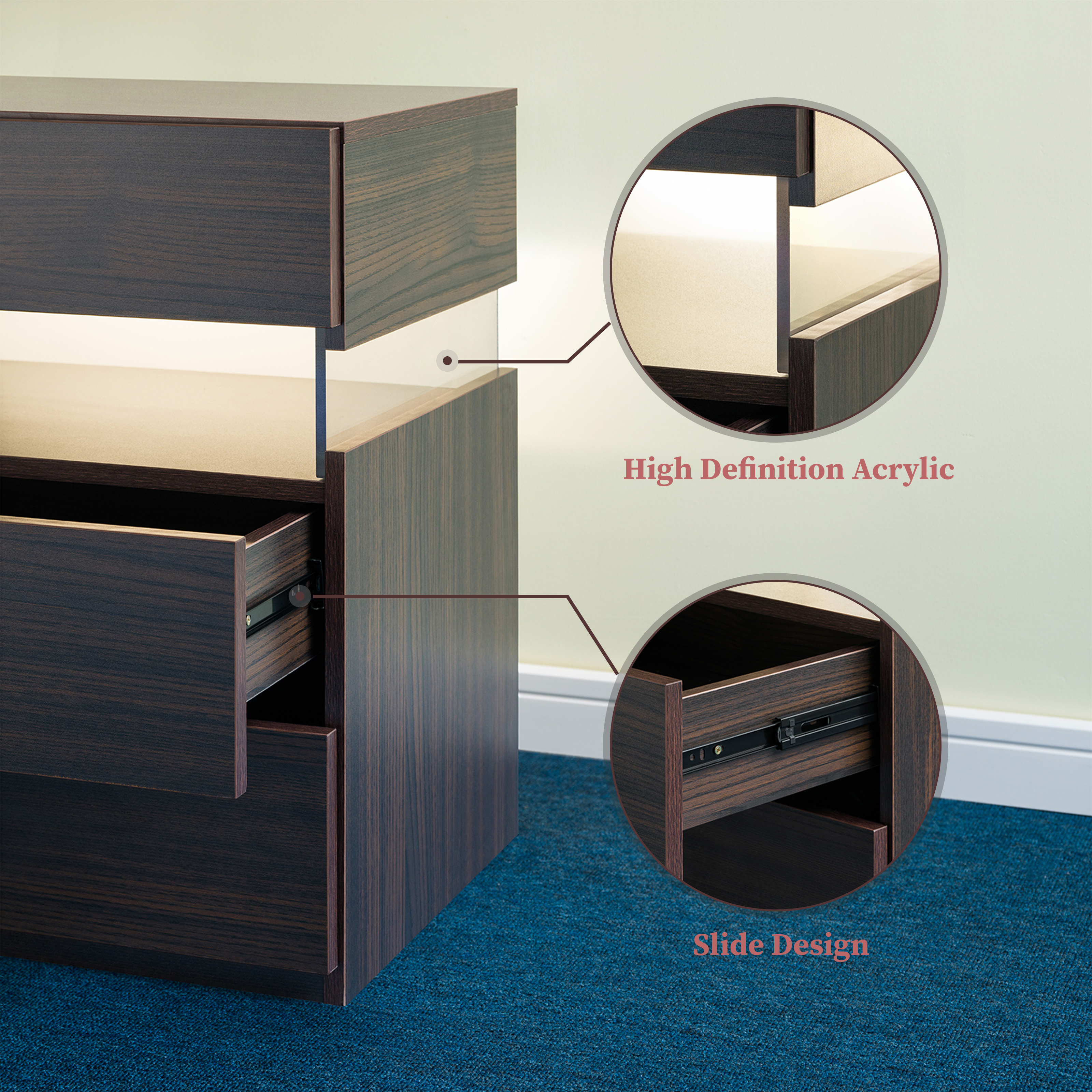 Product Name:LED Nightstands 3 Drawer Dresser for Bedroom End Table with Acrylic Board LED Bedside Tables (Walnut)