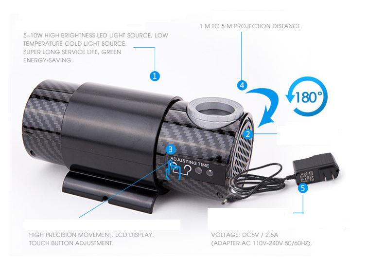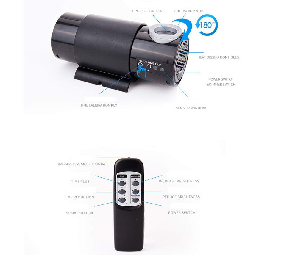 4. Dual-purpose wall clock, 180-degree rotating projection