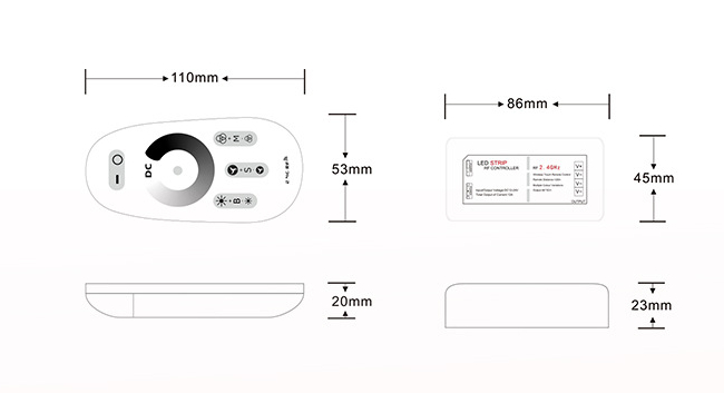 1. The remote control adopts touch 433 RF and is equipped with a remote control seat