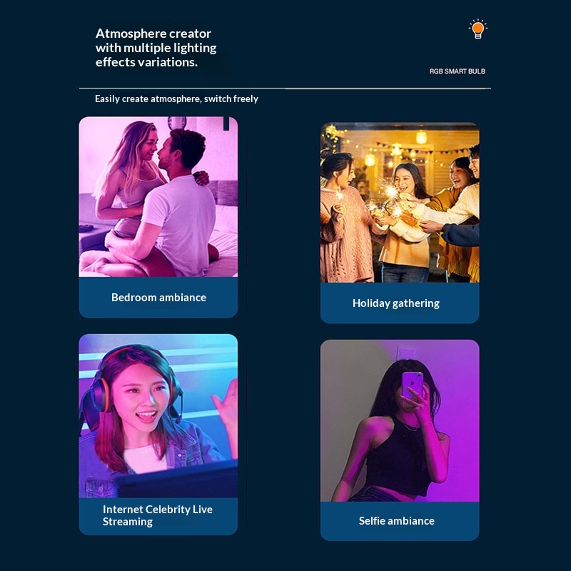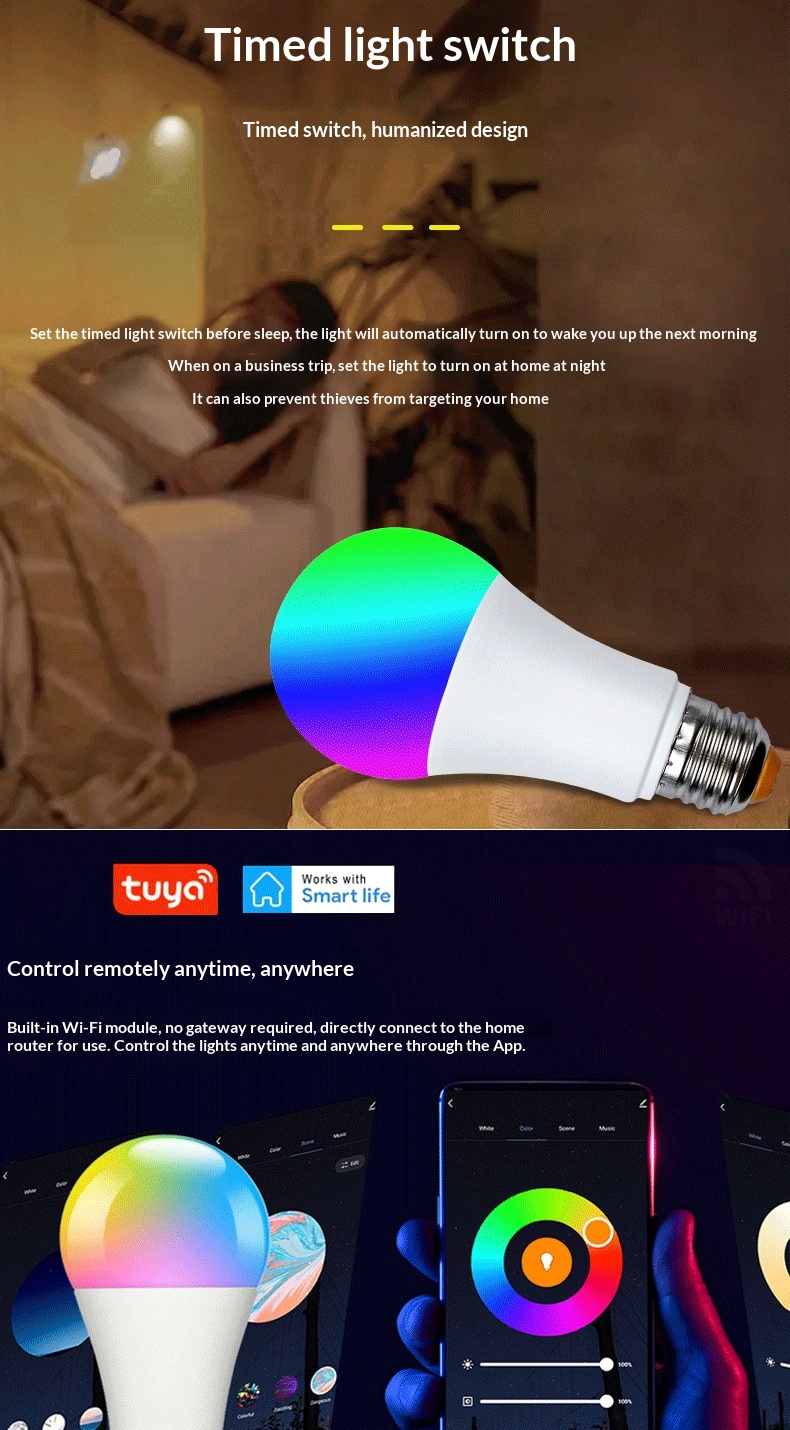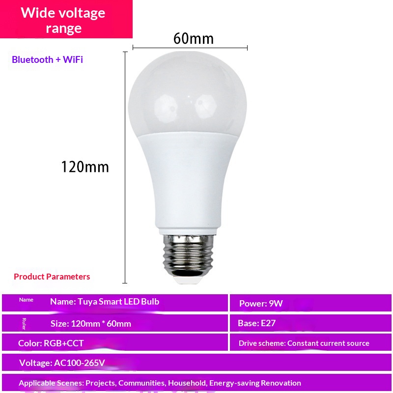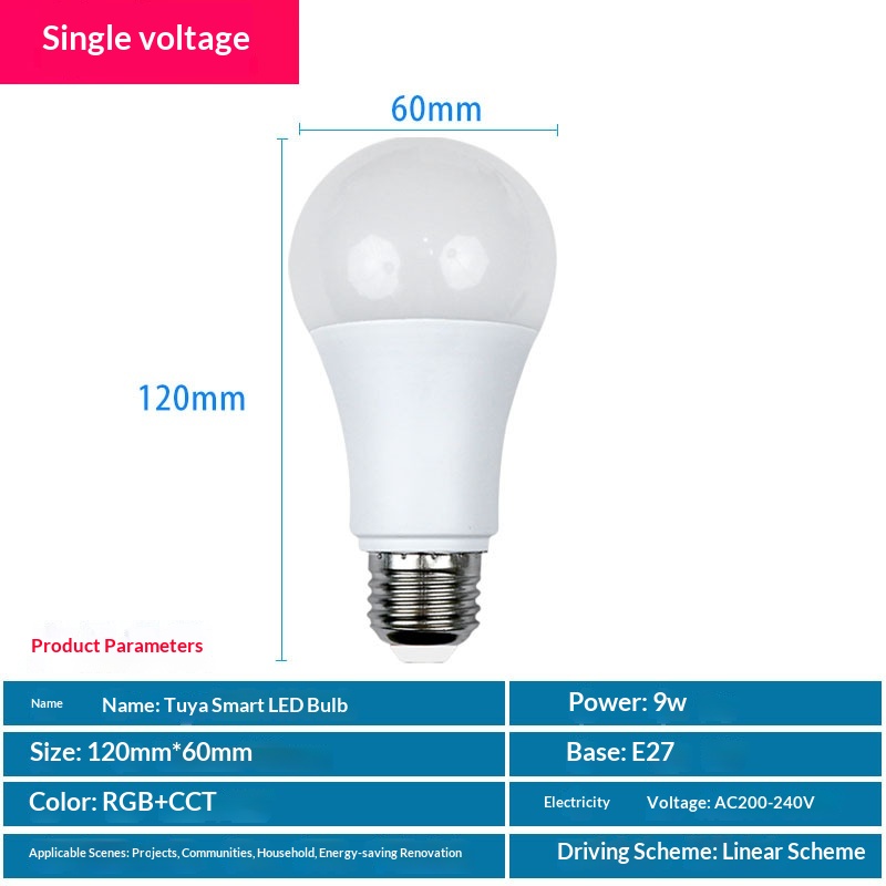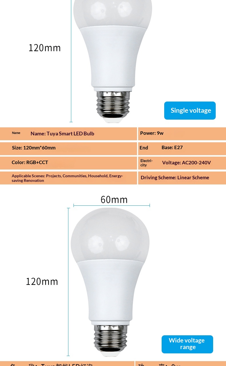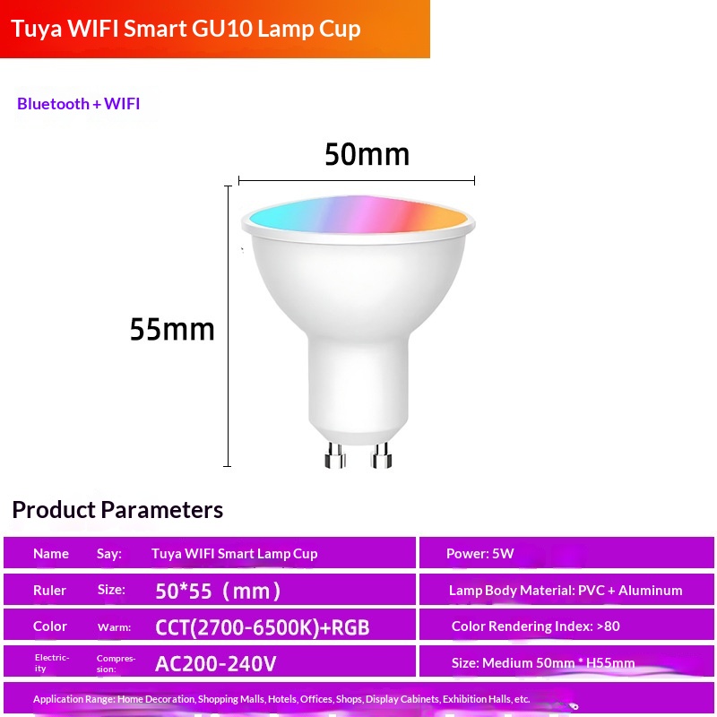Power: RGB Bluetooth [200–240V] – 9W, RGB Bluetooth + Wi-Fi [100–265V] – 9W, RGB light cup + Wi-Fi