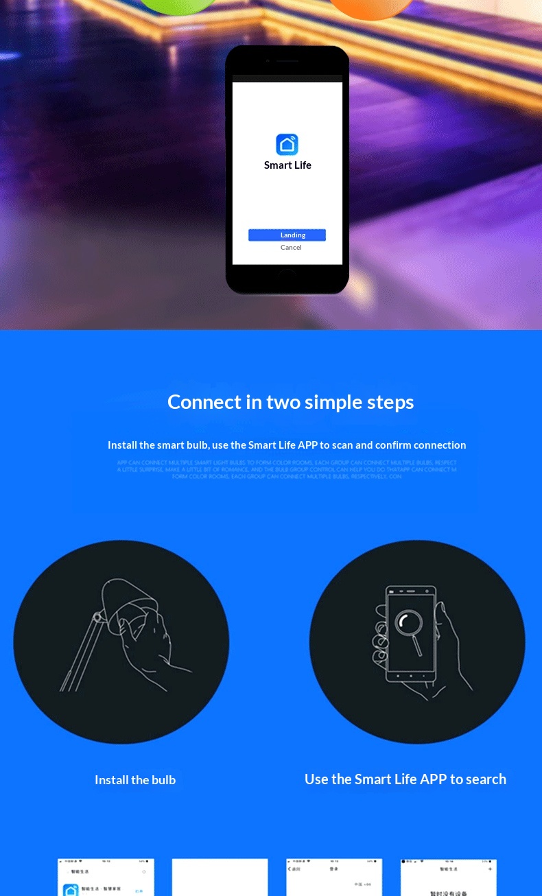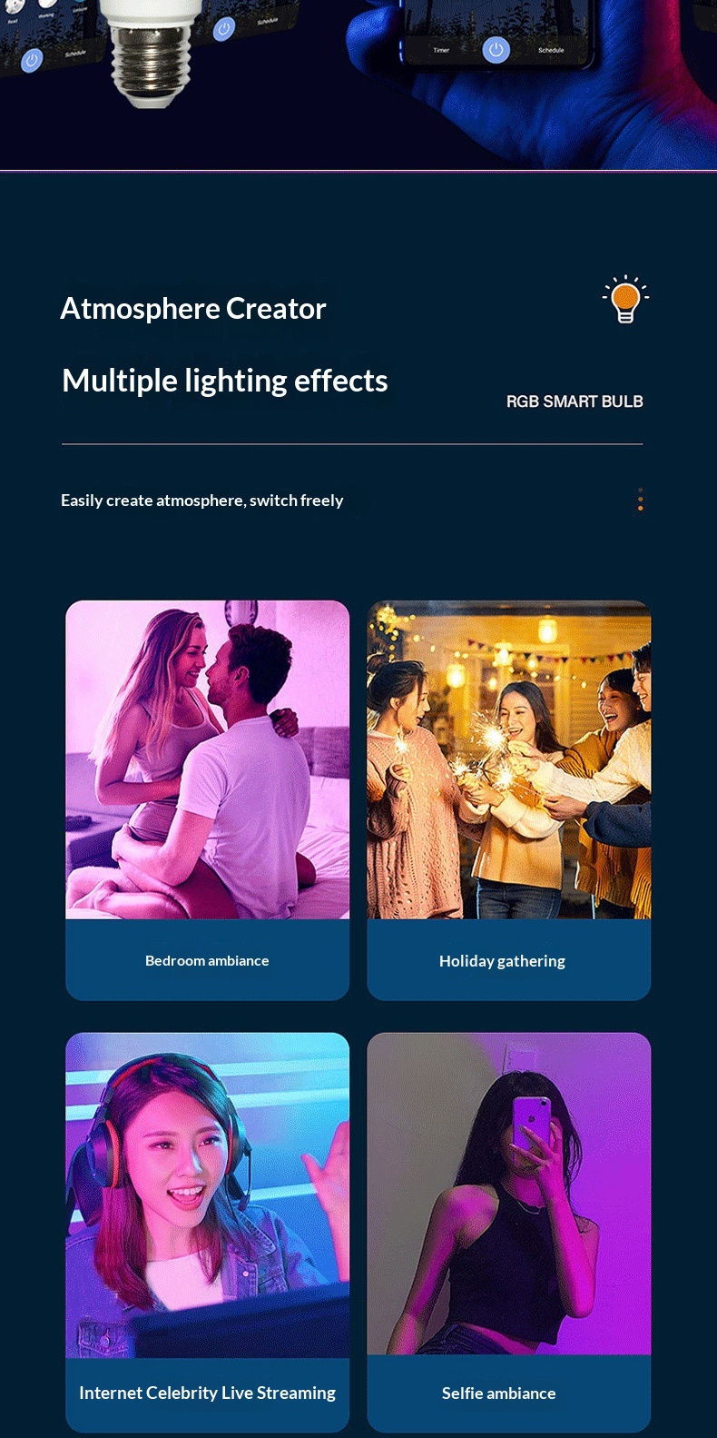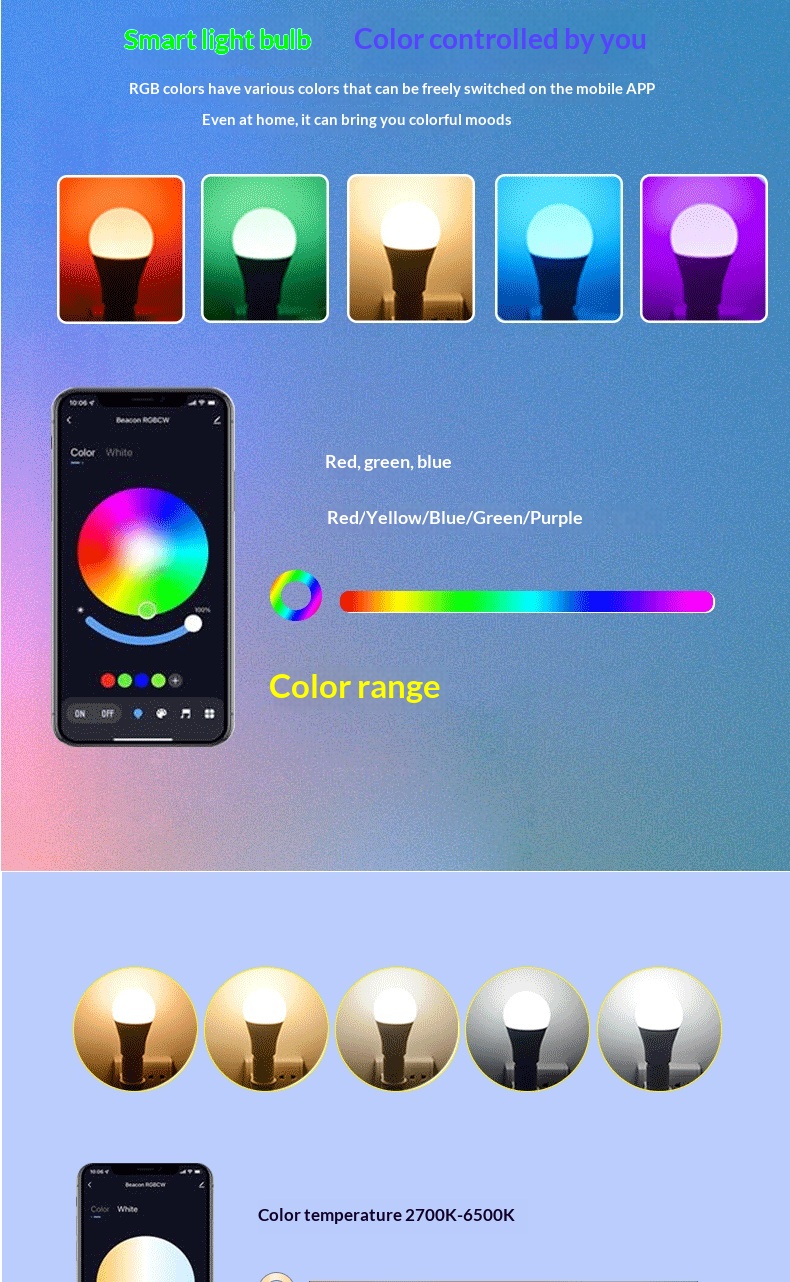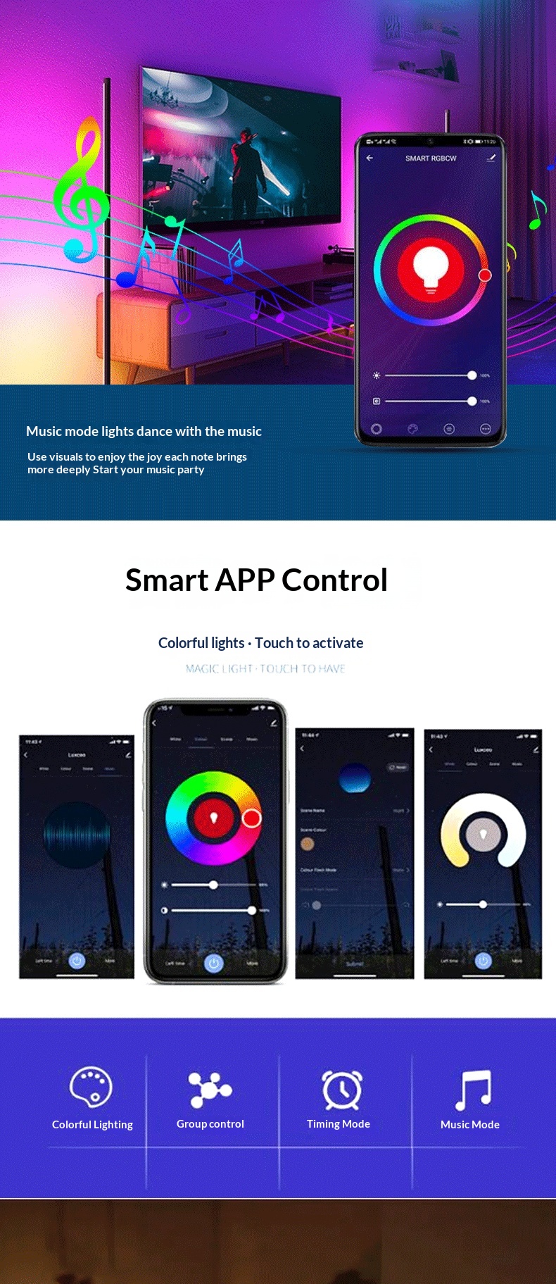 Power: RGB Bluetooth [200–240V] – 9W, RGB Bluetooth + Wi-Fi [100–265V] – 9W, RGB light cup + Wi-Fi