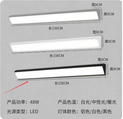 Product information:Light color: black 150cm 48W Voltage: 220V Style: modern simplicity Material: Aluminum Shade material: PC