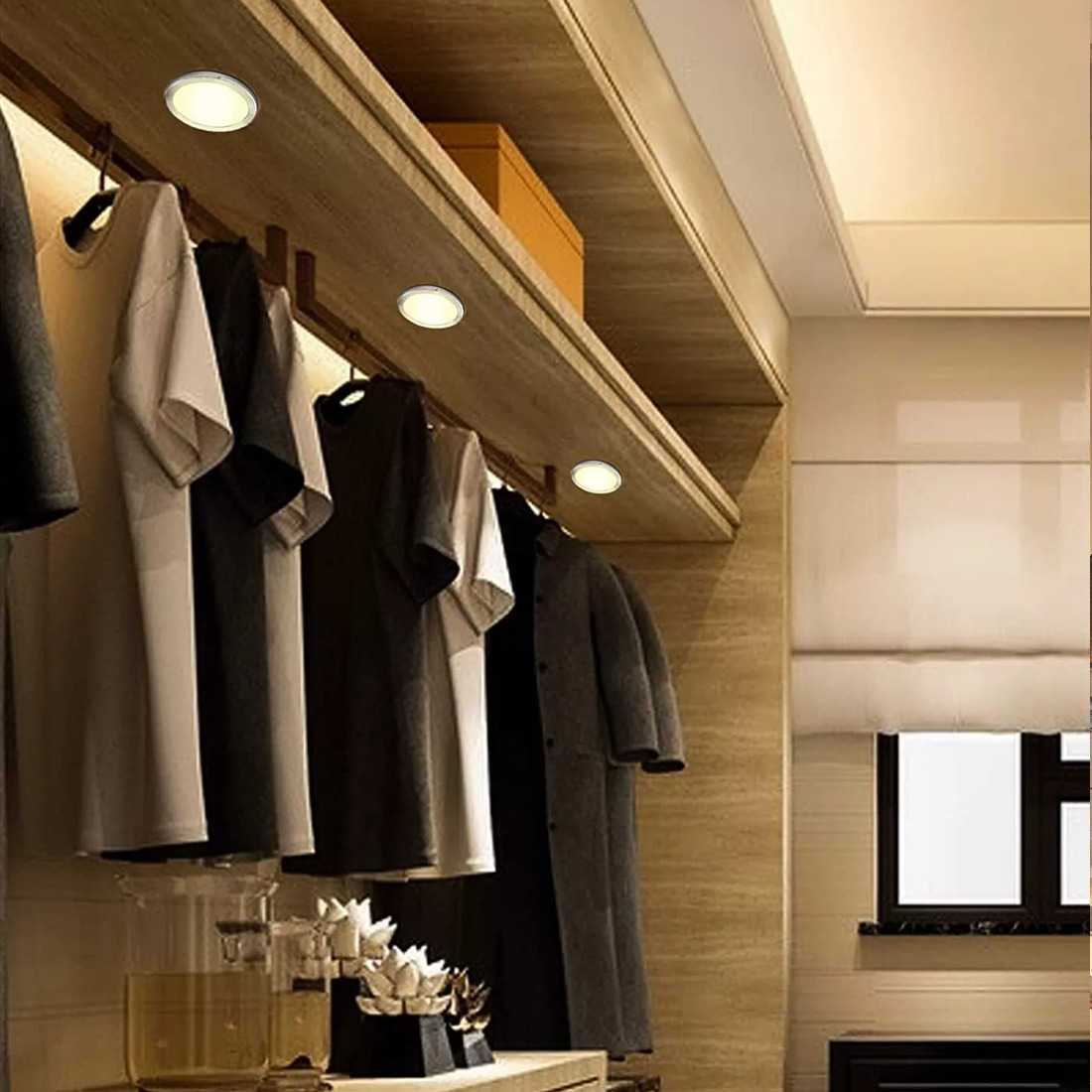 Applications: The LED under Cabinet puck lights can be widely used in furniture lighting, cabinet lighting, indoor lighting. Suitable for commercial and residential application like office, kitchen, showcase, shoes cabinet, desk/bookshelf, gallary, wine cabinet, wardrobe illumination and decoration.