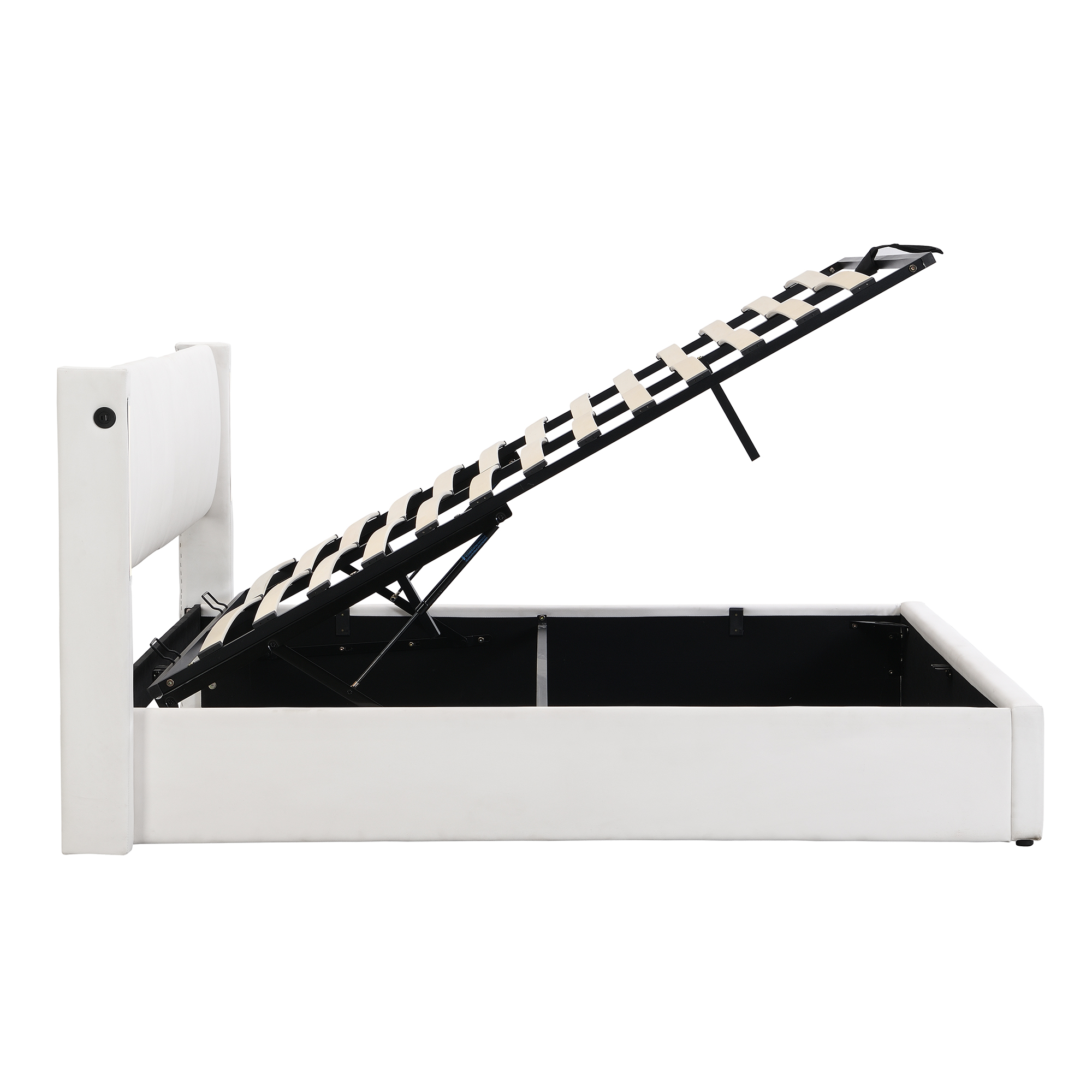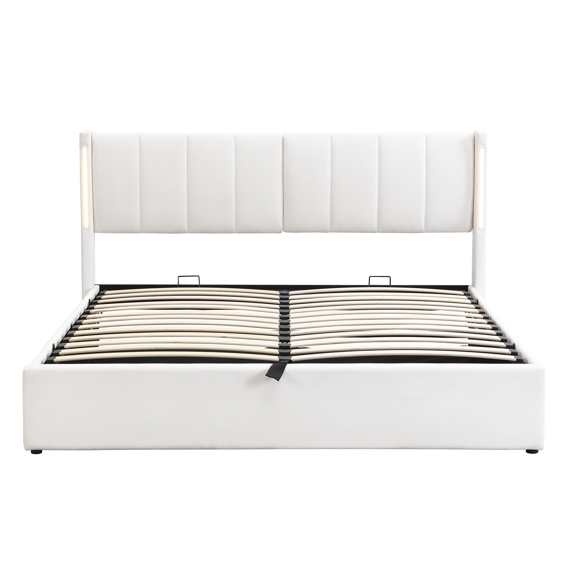 Product Name:LED upholstered bed ,Double Bed-4ft6(135*190cm), hydraulic bed, rechargeable USB port in bed, with LED lighting, with storage space, adjustable headboard, PU , white