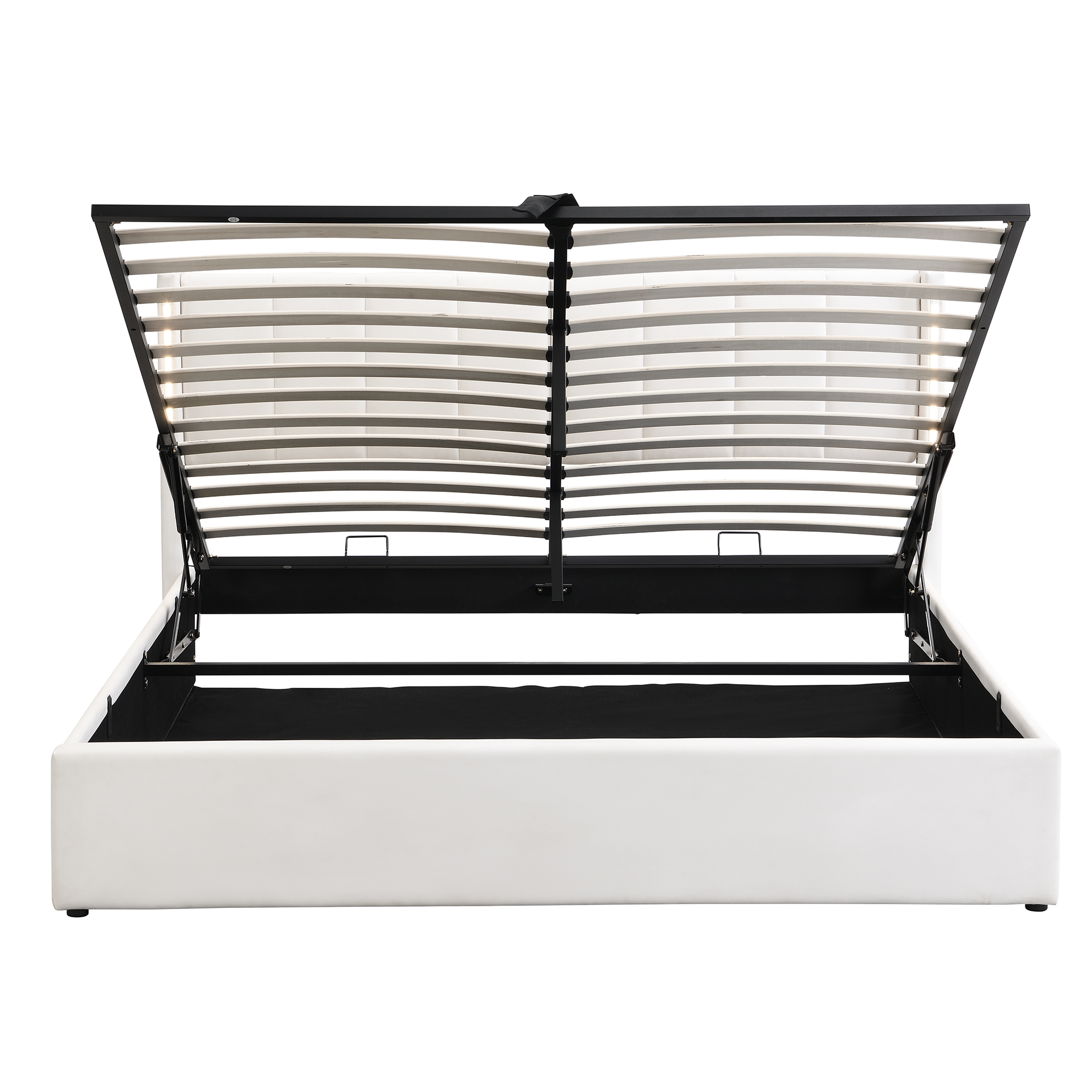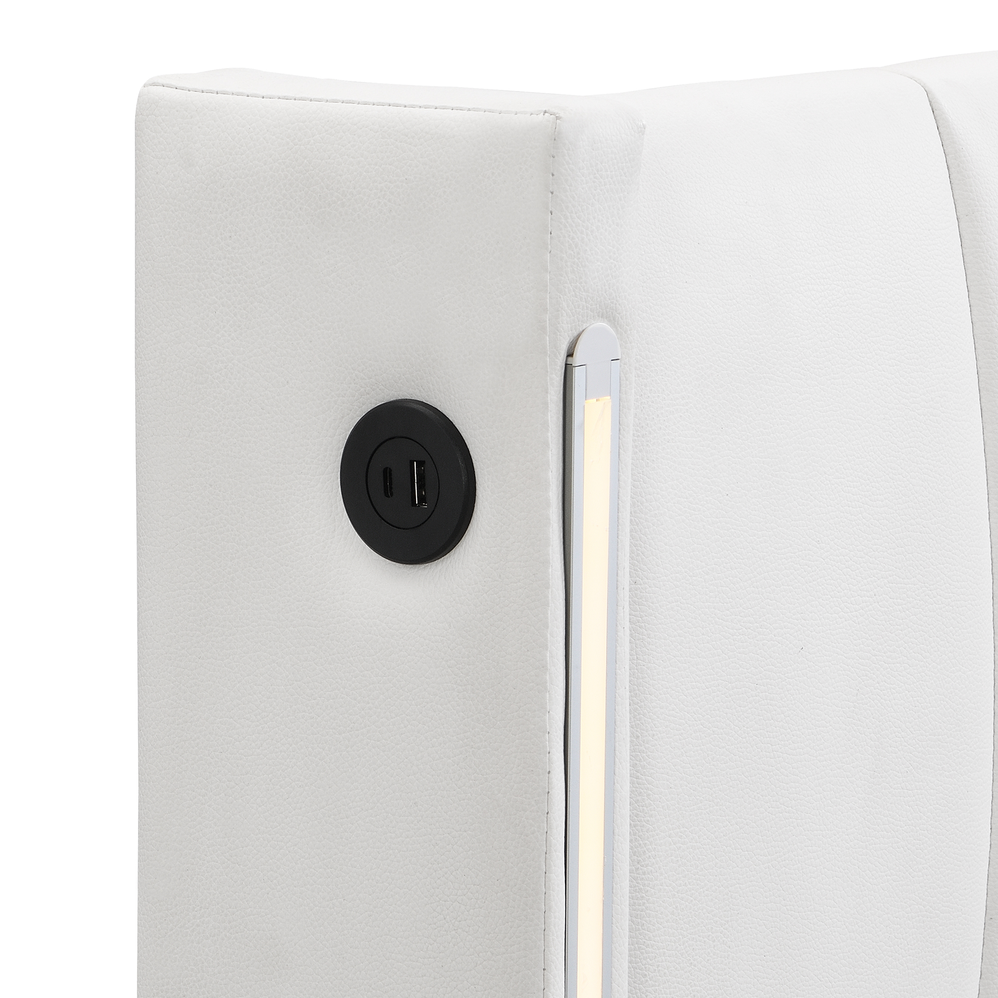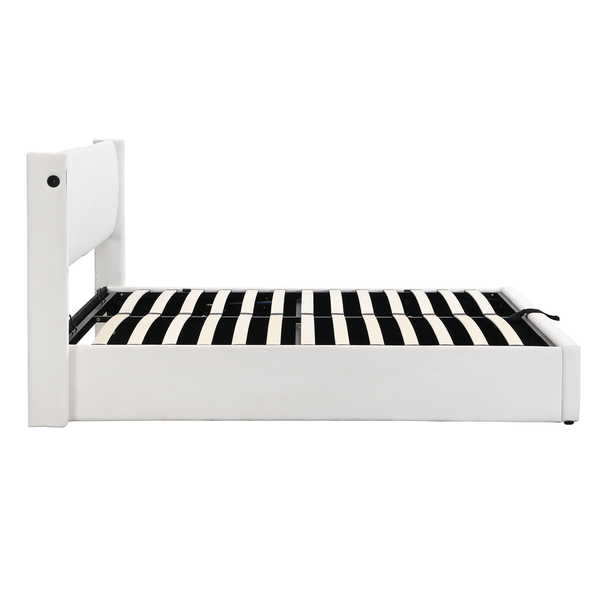 Product Name:LED Upholstered Super King Size Bed - 6ft (180x200cm) with Storage & Hydraulic Lift, USB Charging Ports, Adjustable Headboard & Lighting, PU , white