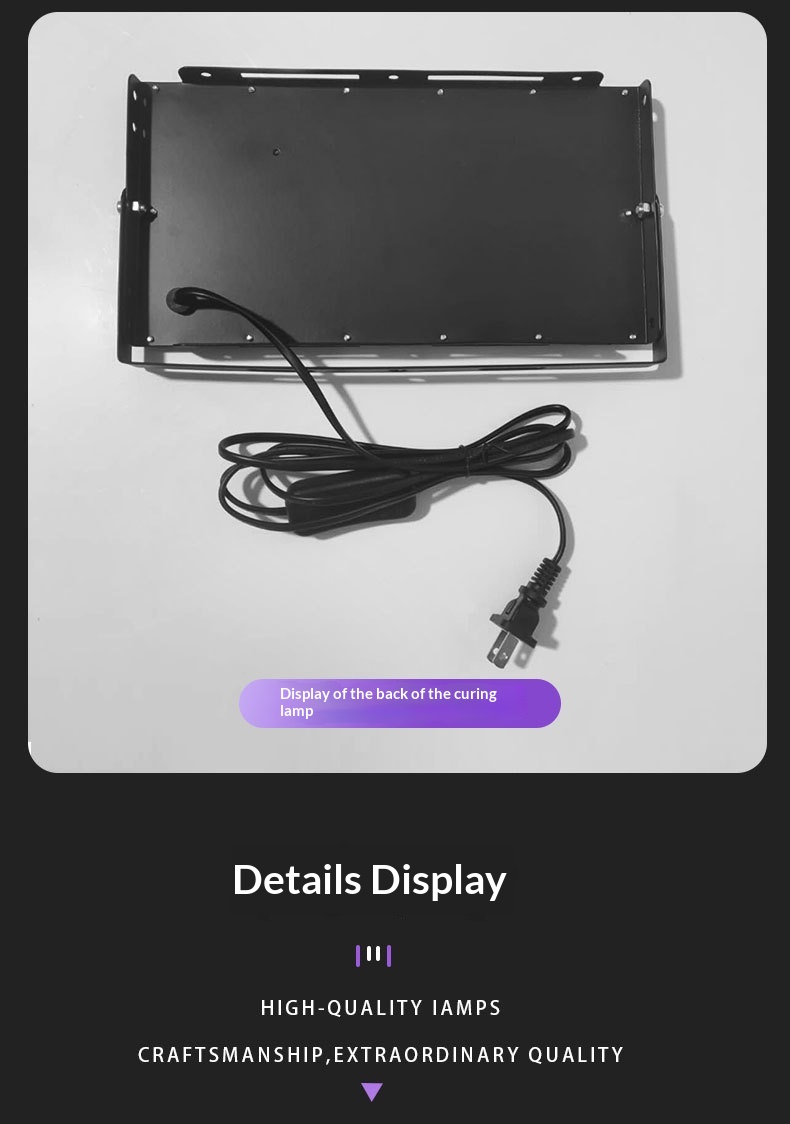 Specifications: 50W-395nm 220V (China standard), 50W-395nm 220V (EU standard), 50W-395nm 110V (US standard), 100W-395nm 220V (China standard), 100W-395nm 220V (EU standard), 100W-395nm 110V (US standard), 200W-395nm 220V (China standard), 200W-395nm 220V (EU standard), 200W-395nm 110V (US standard), 300W-395nm 220V (China standard), 300W-395nm 220V (EU standard), 300W-395nm 110V (US standard), 300W-460nm [110V—specially for US black lights]
