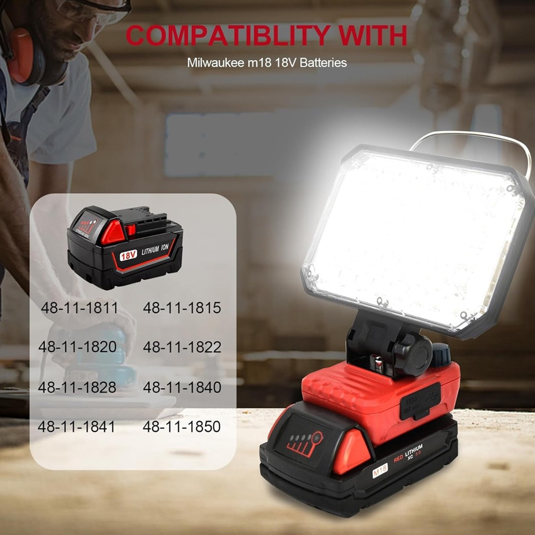 Battery Powered(Not Included): The LED work light compatible with Milwaukee M18 series lithium-ion batteries, suitable for 48-11-1815, 48-11-1828, 48-11-1850, 48-11-1852, 48-11-1865. We focus on reliable tools, provide Milwaukee power access solutions, stay away from inferior and dangerous batteries.