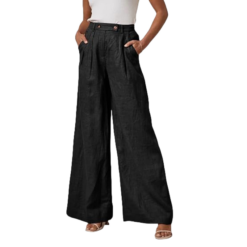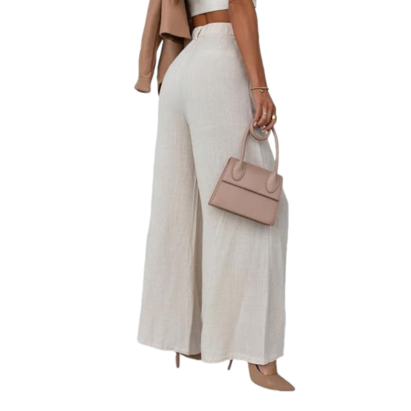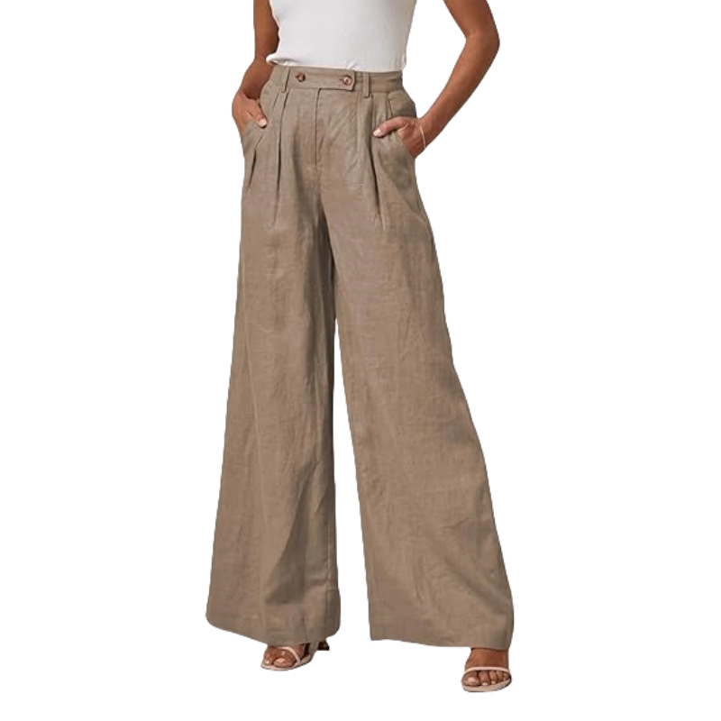 Leg Cotton And Linen Trousers Leisure Elastic High Waist Wide Leg Pants