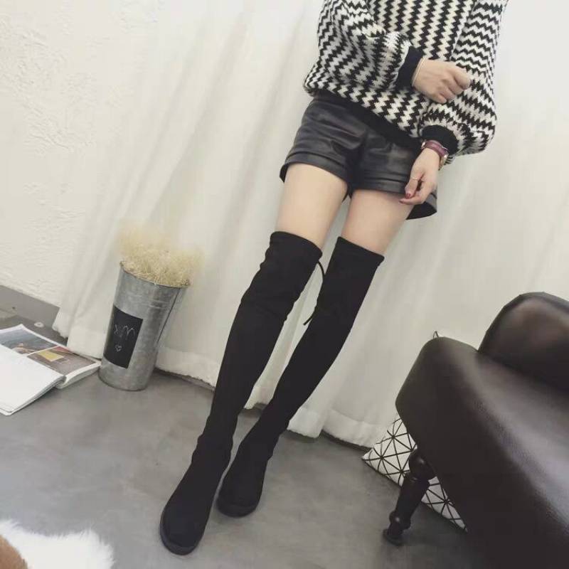 Leg Stretch Women's Boots Flat-bottomed High-top Large Size