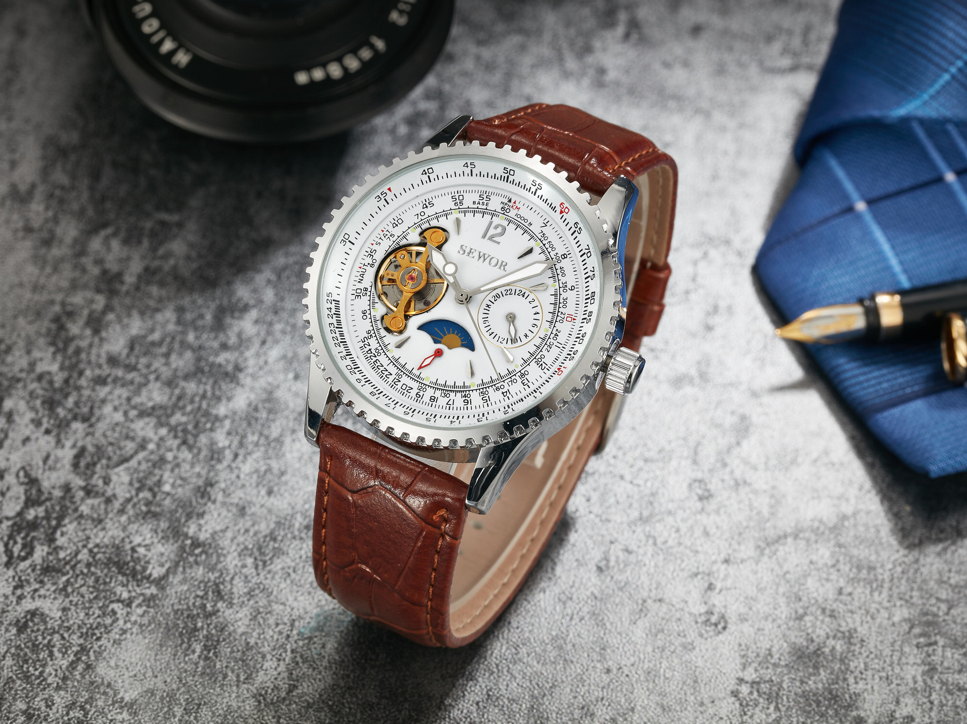 Color: silver shell black face black belt Dandong flywheel, silver shell white face brown belt Dandong flywheel