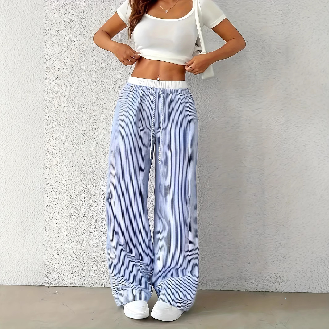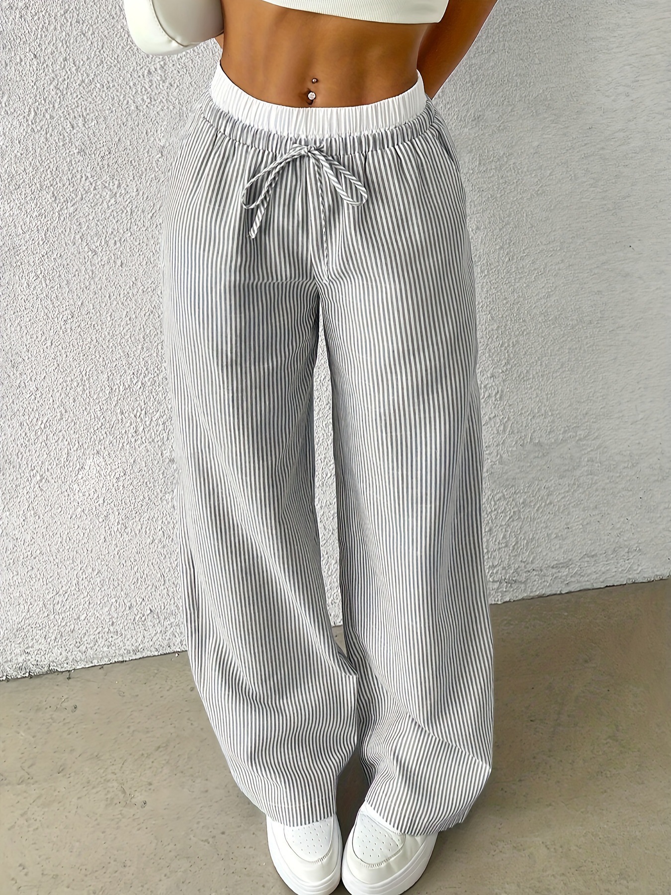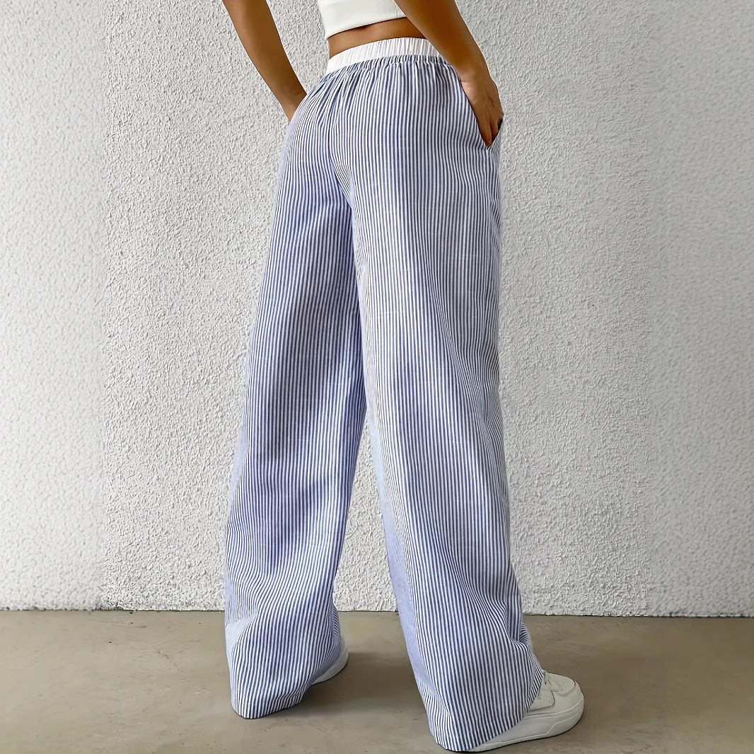 Leisure Commute Simple Blue Striped Draggle-tail Straight Trousers
