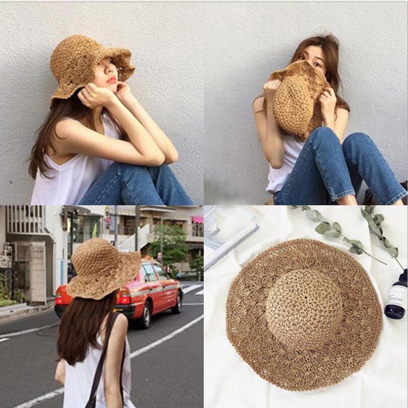 The foldable straw hat is not afraid of pressure, it is easy to carry and can be put in the bag