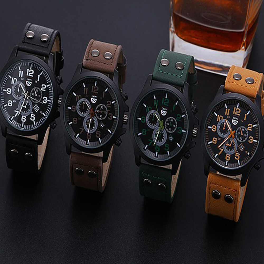 Product description: New style frosted belt men's watch casual sports three-eye digital scale quartz watch
