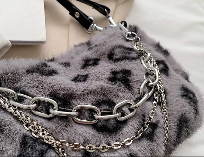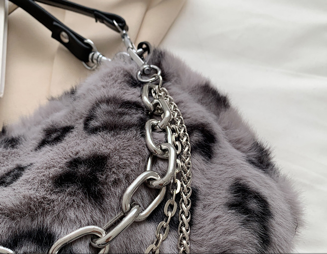 Leopard Pattern Plush Chain Stick Bag Casual