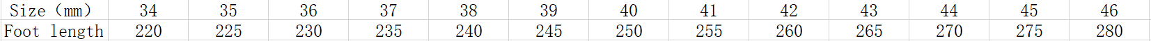 Size: 36, 37, 38, 39, 40, 41, 42