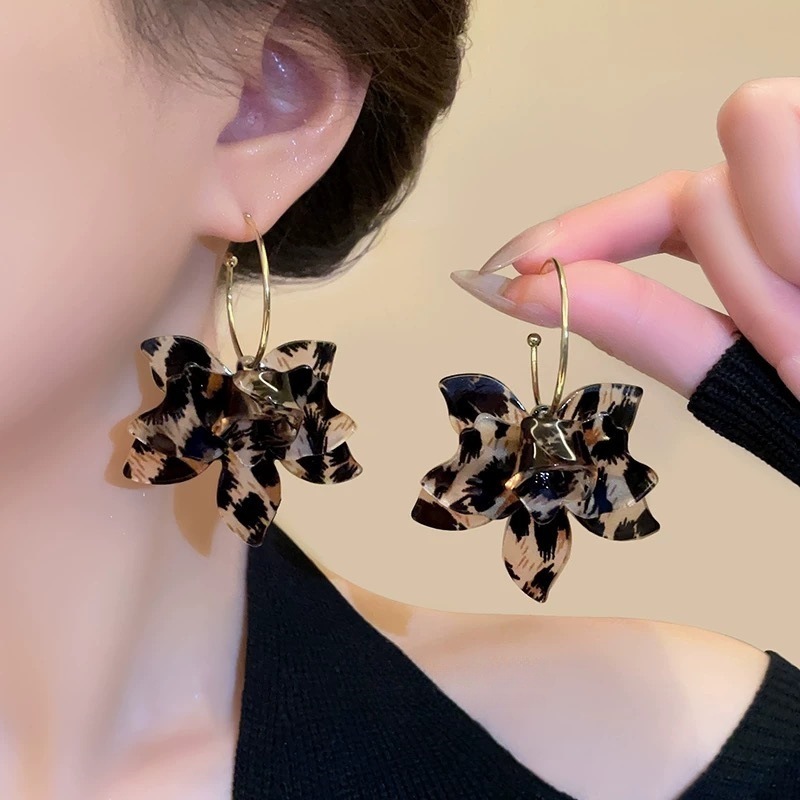 Product information:Style: large leopard print earrings Material: acetic acid Popular elements: flowers, petals