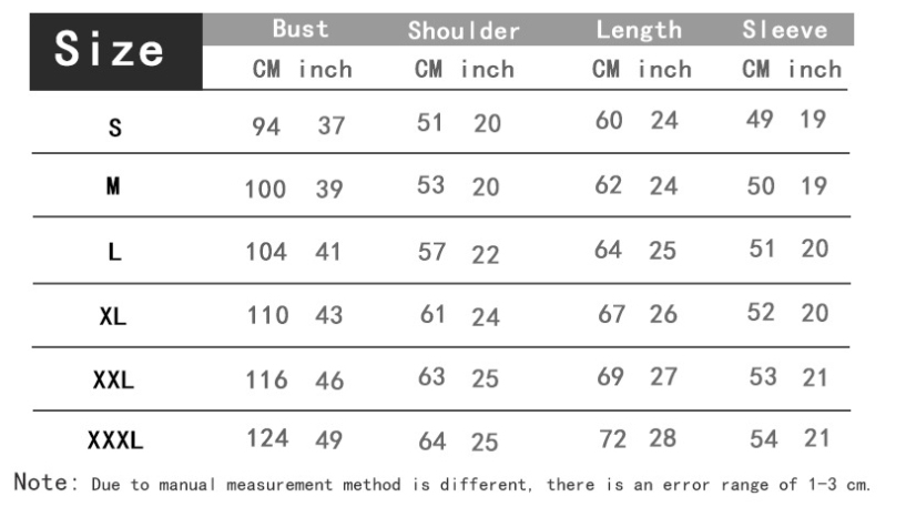 1. Asian sizes are 1 to 2 sizes smaller than European and American people. Choose the larger size if your size between two sizes. Please allow 2-3cm differences due to manual measurement. 2. Please check the size chart carefully before you buy the item, if you don't know how to choose size, please contact our customer service. 3.As you know, the different computers display colors differently, the color of the actual item may vary slightly from the following images.
