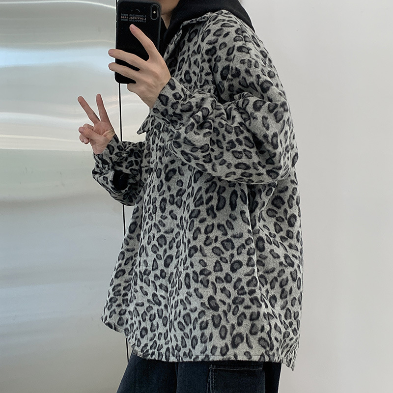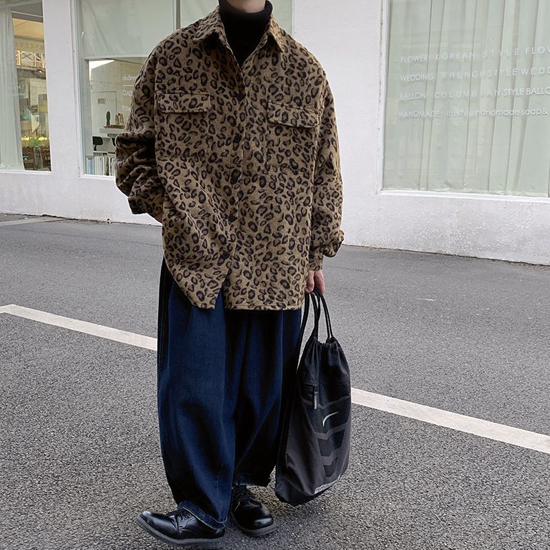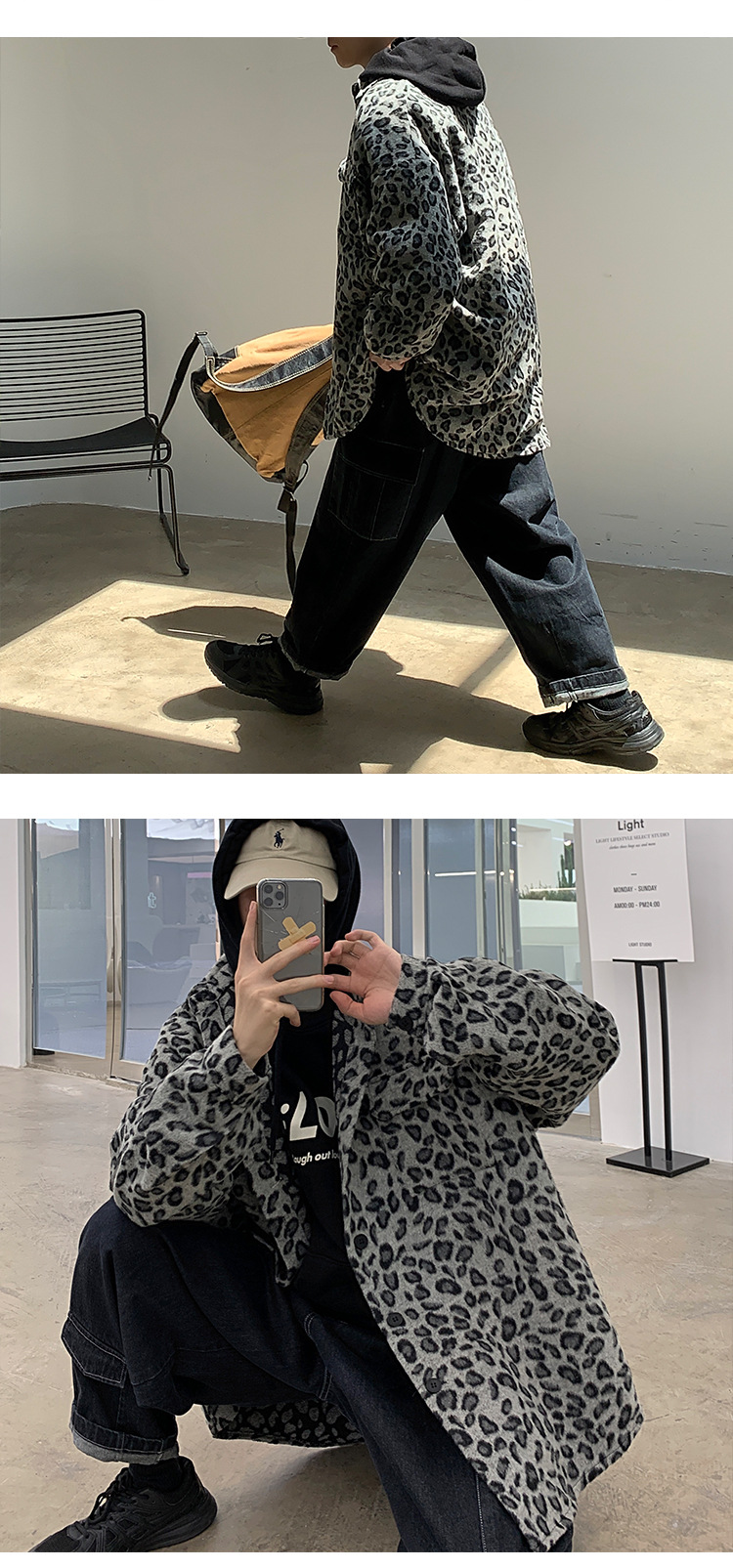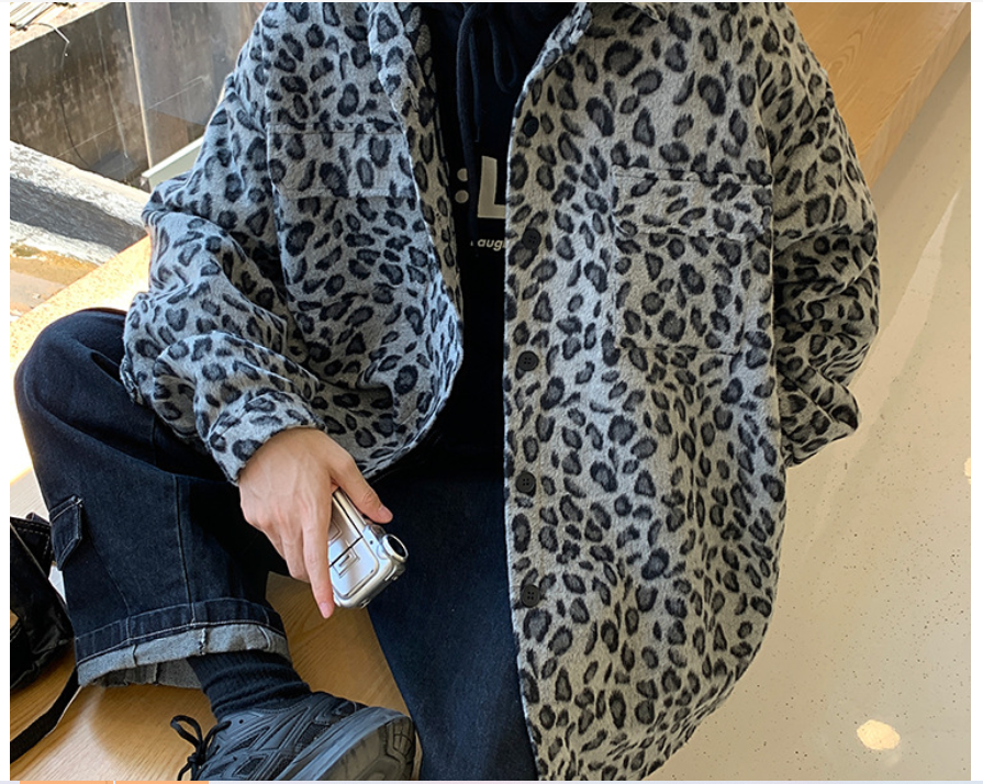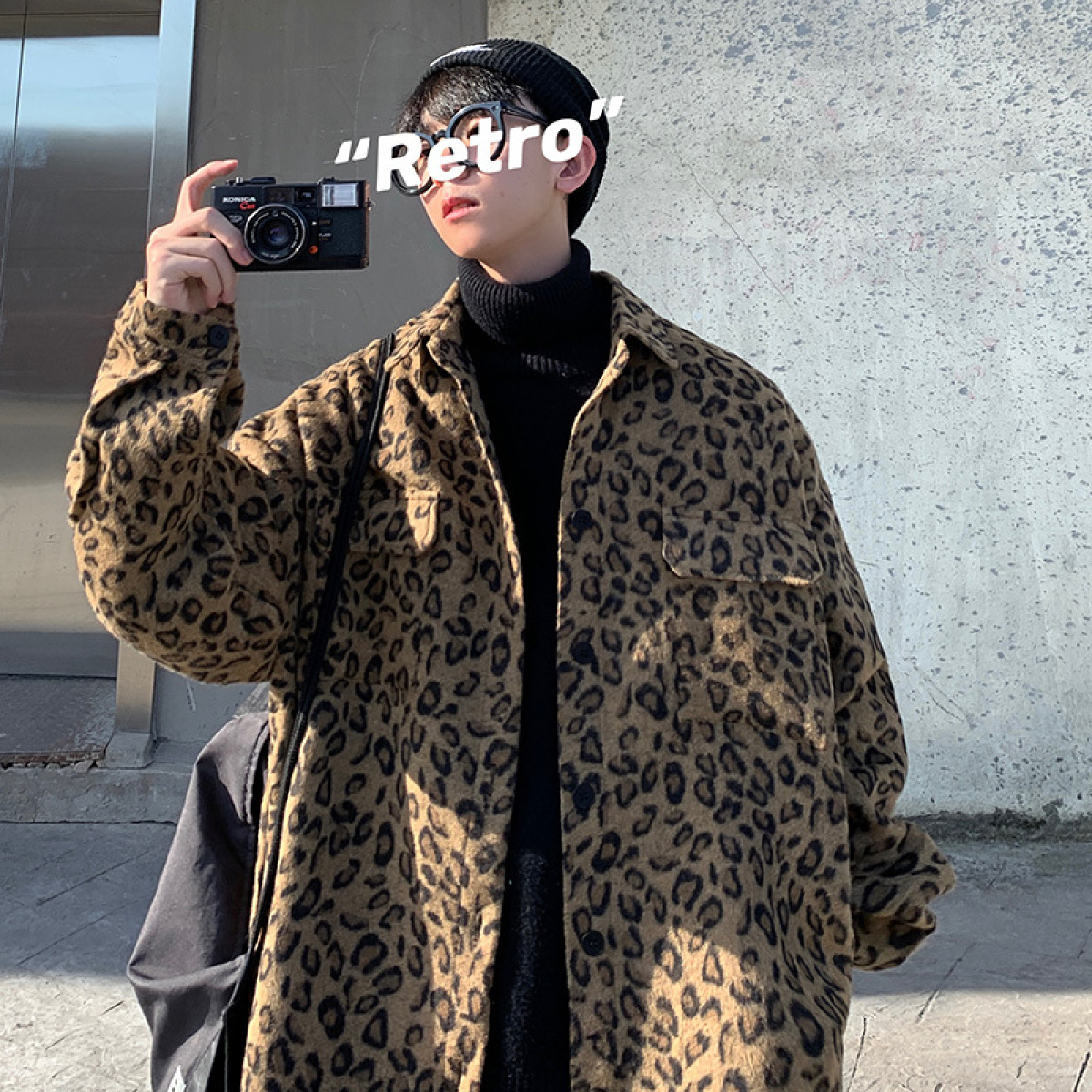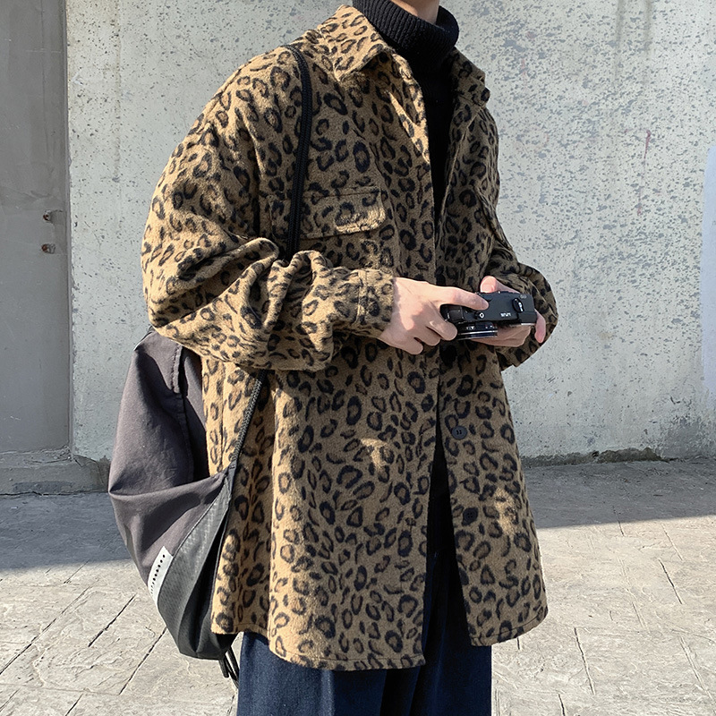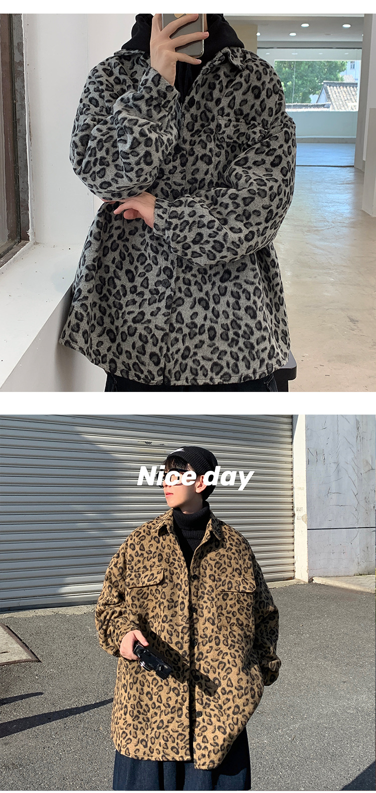 Leopard Print Men's Autumn Thickened Tweed Jacket