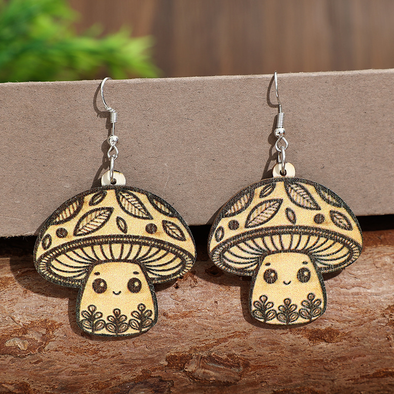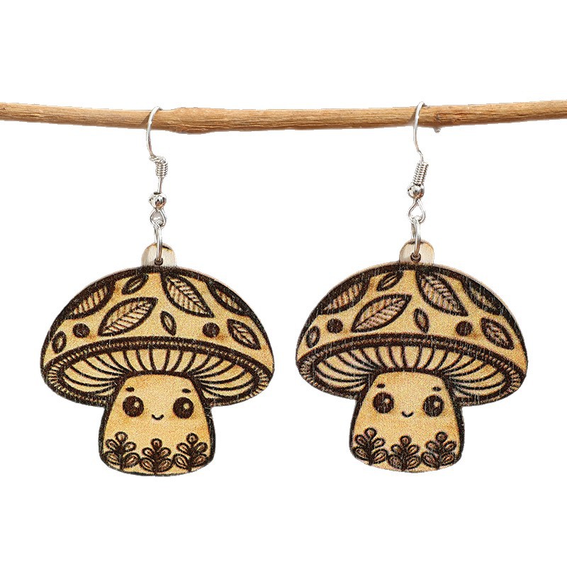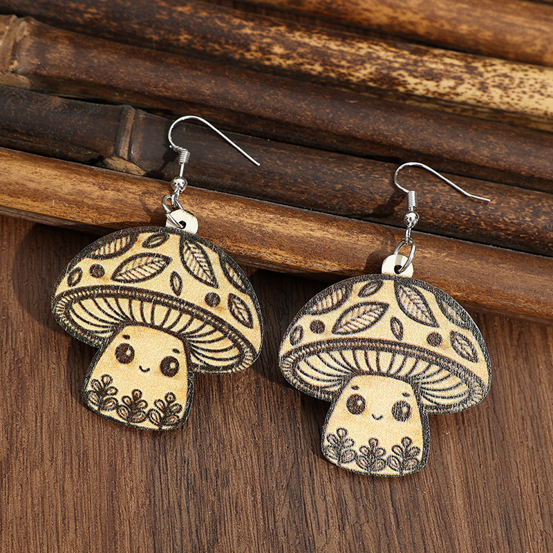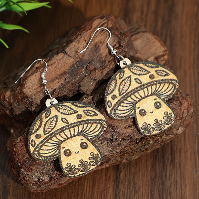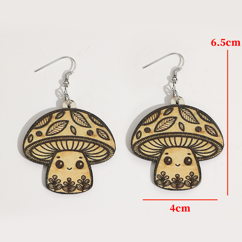 Leopard-Print Mushroom Pendant Wooden Earrings