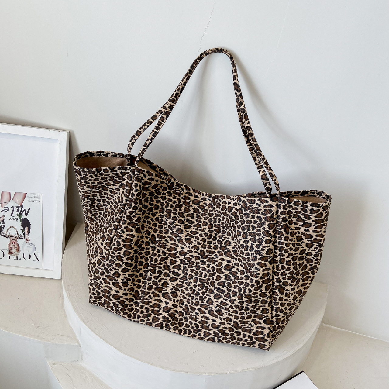 Leopard-print Shoulder Idle Style Leisure Shopping Bag