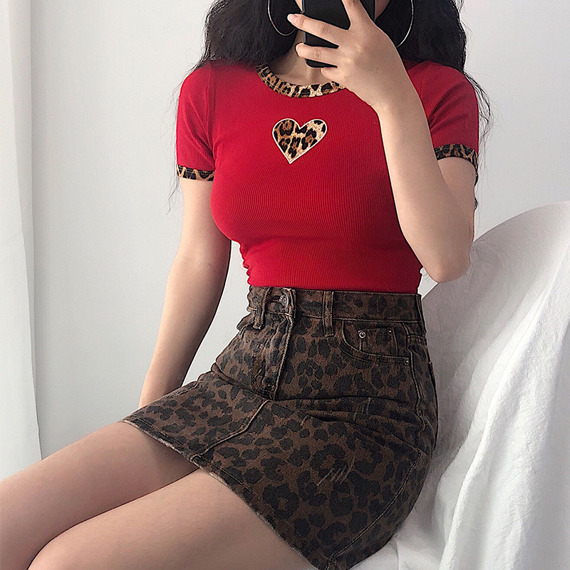 Leopard Print Slimming Sheath Retro A- Line Skirt