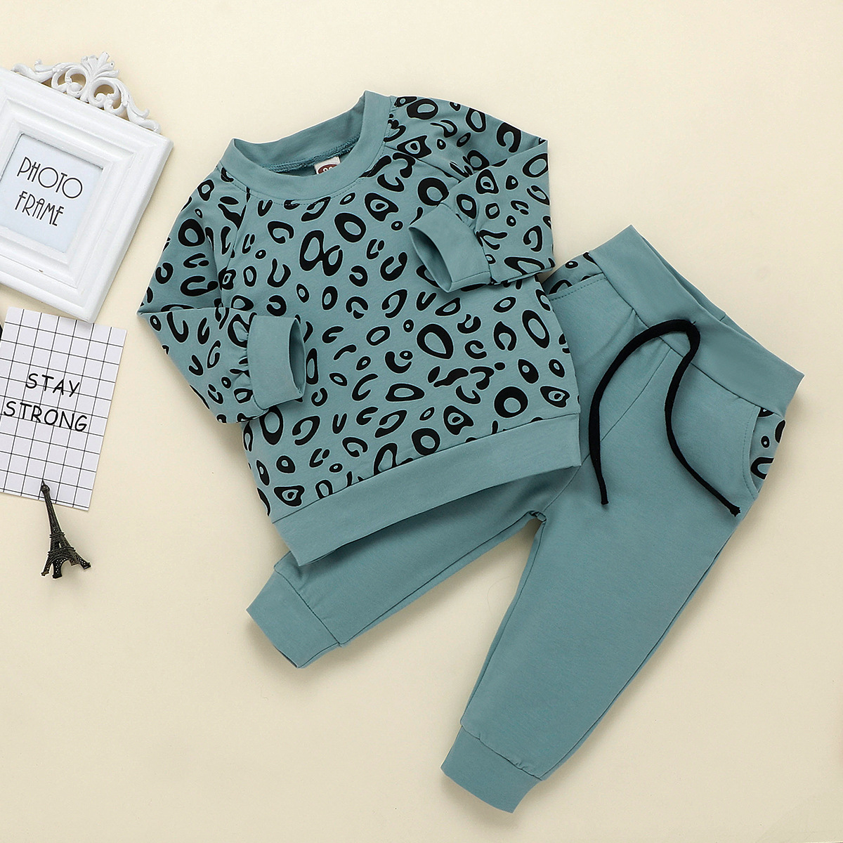 Leopard print top and sweatshirt solid color trousers