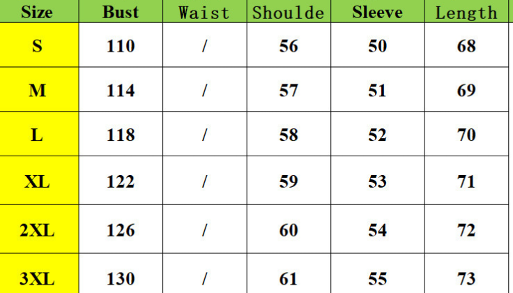 Size:S,M,L,XL,2XL,3XL unit:cm