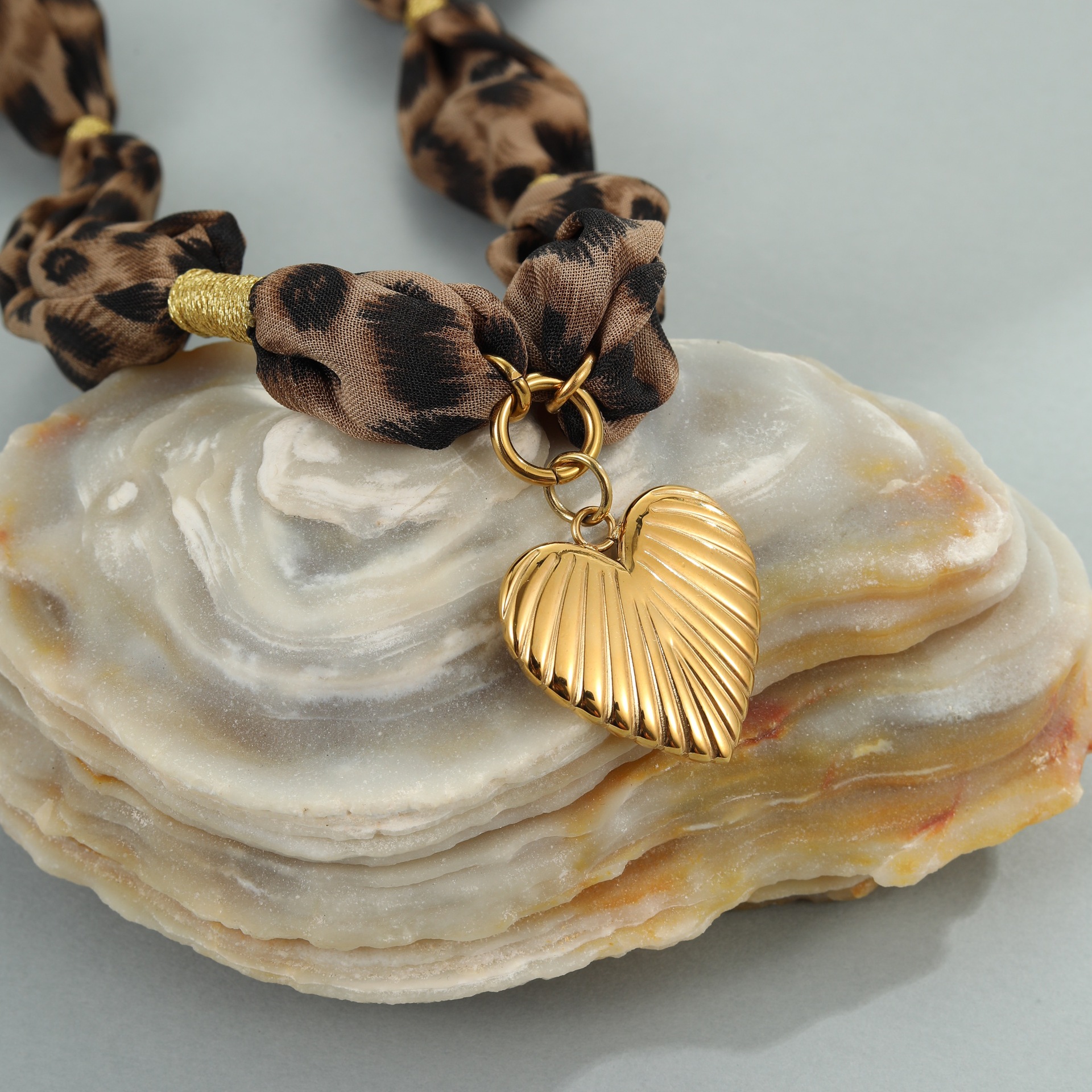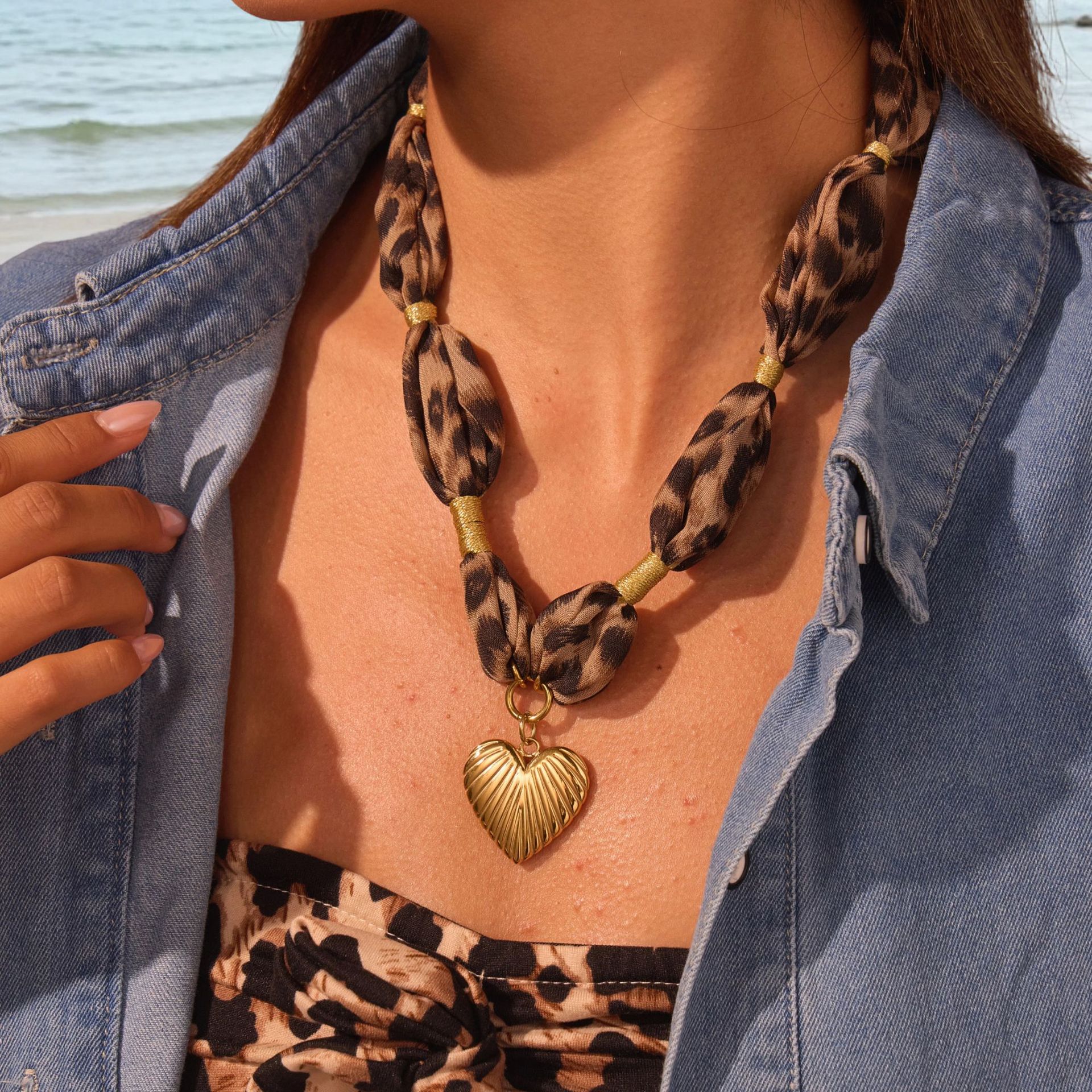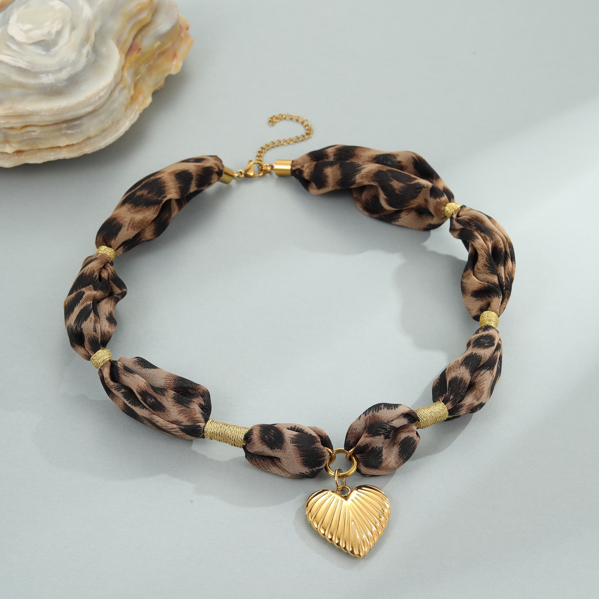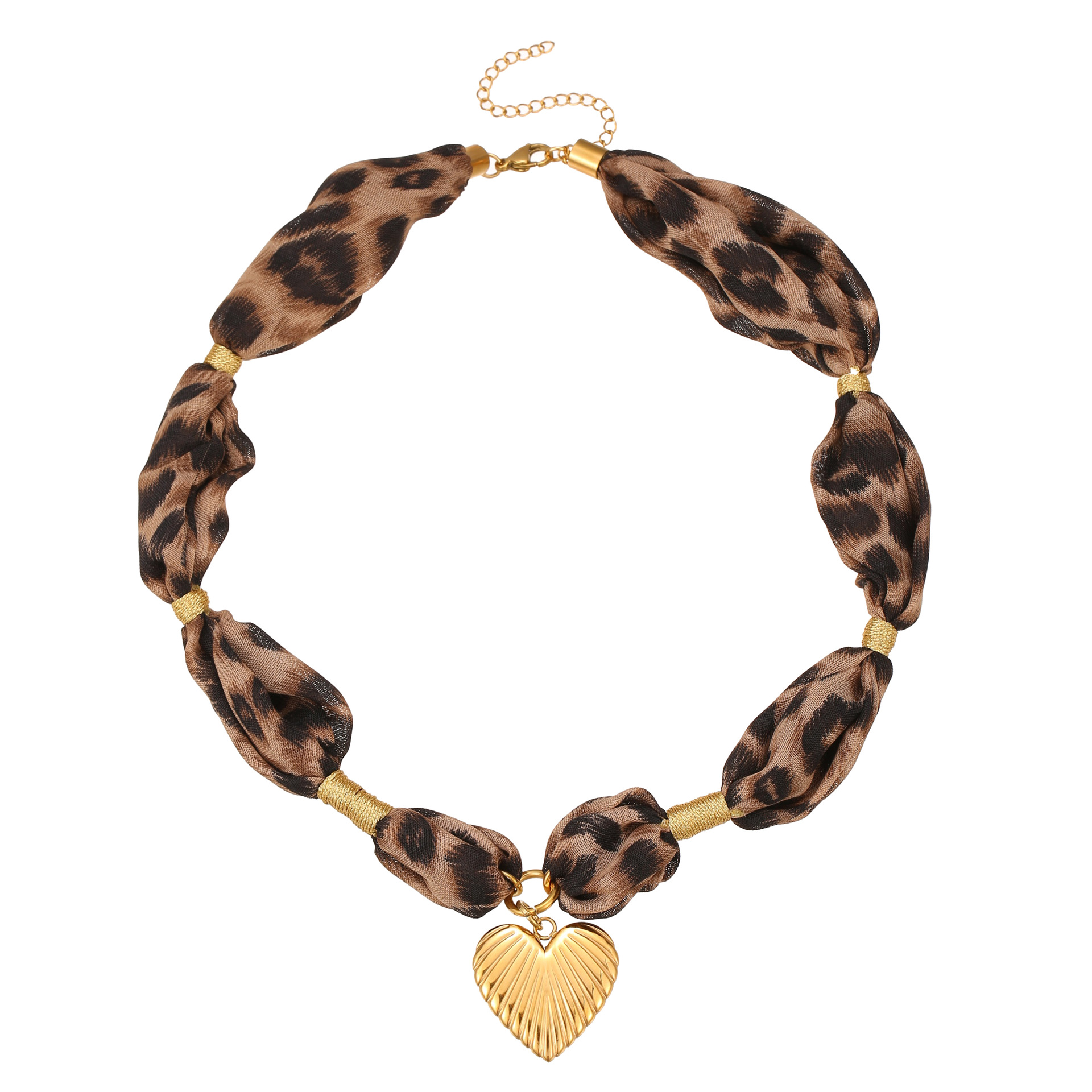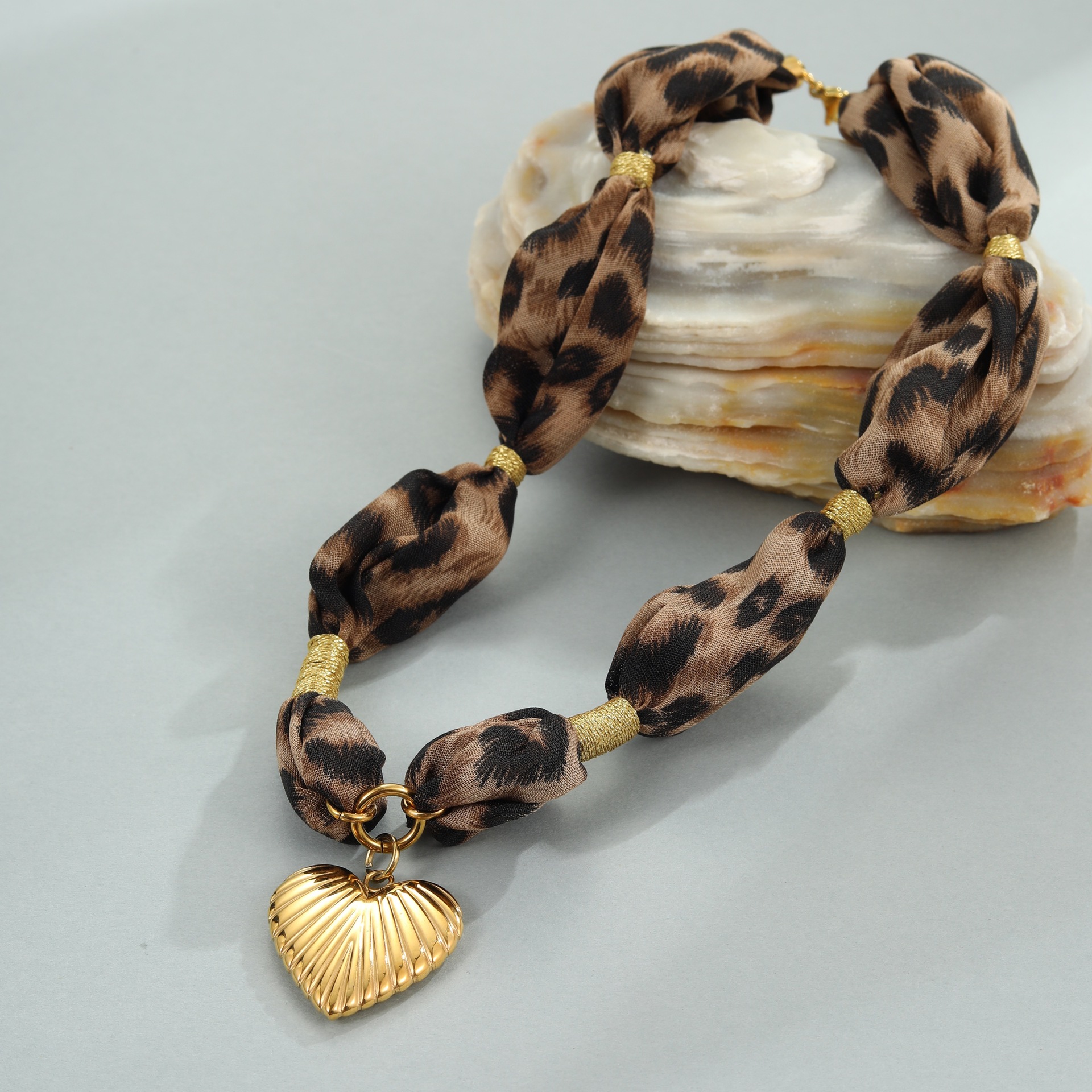 Leopard Silk Scarf Love Pendant Stainless Steel Necklace