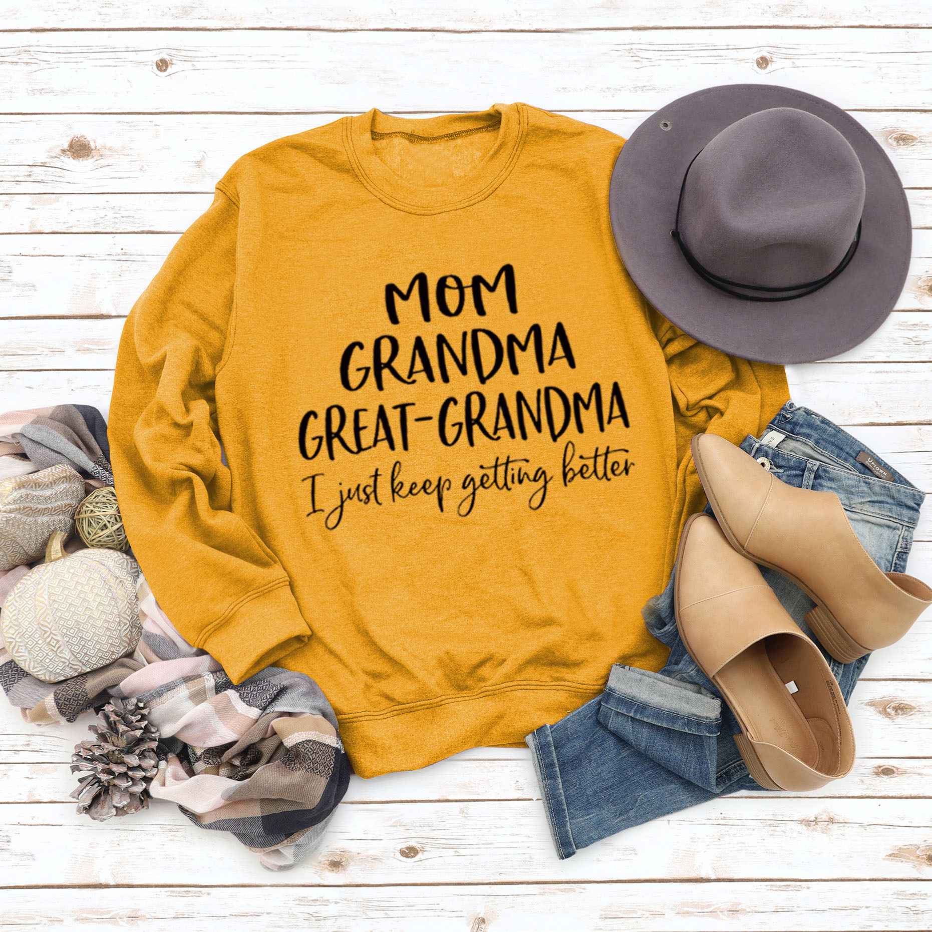 Colors: black sweater (white font), white sweater (black font), pink sweater (black font), yellow sweater (black font), gray sweater (black font), burgundy sweater (white font), olive green sweater (black font), rose gold sweater (black font), light green sweater (black font)