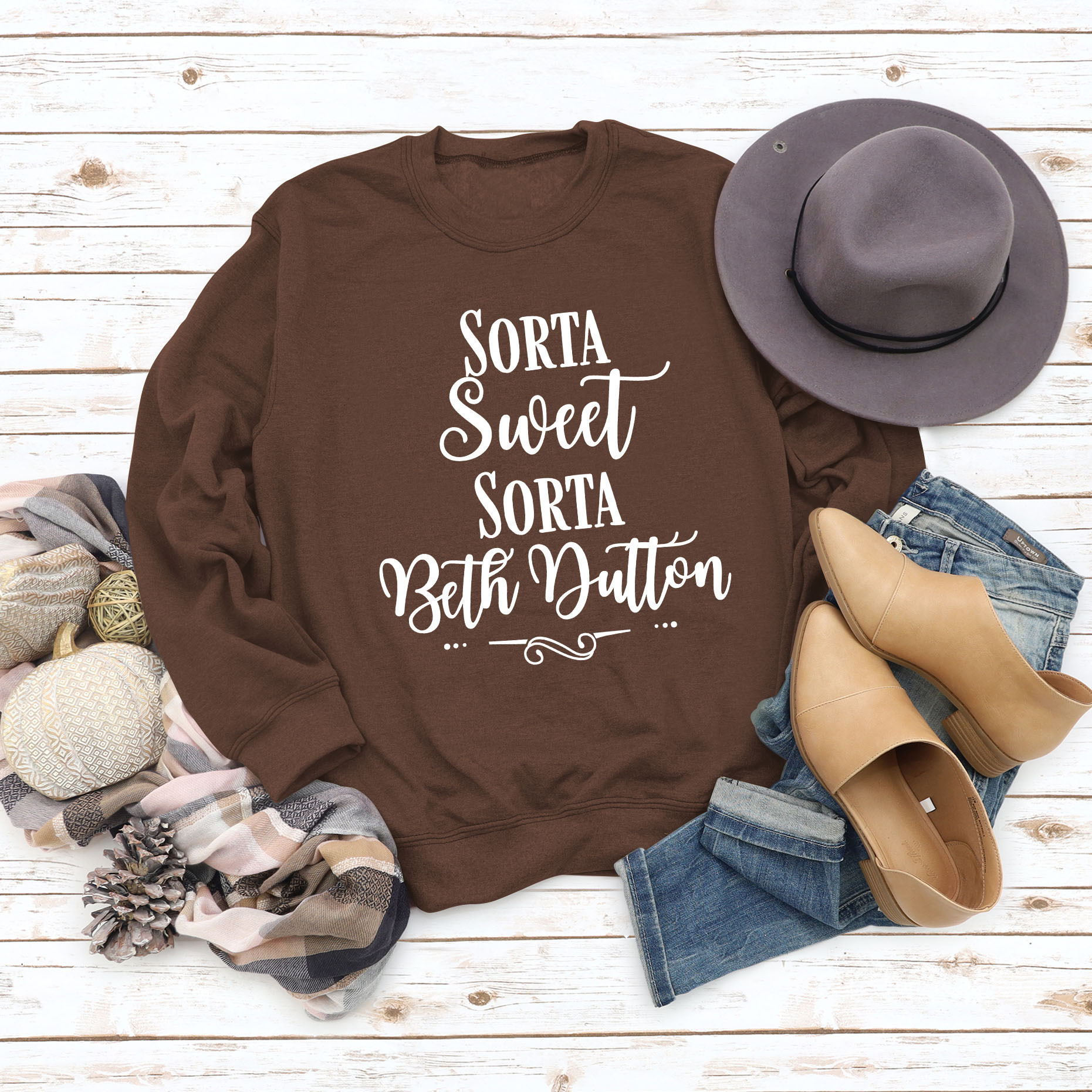 Color: Black, Hoodie (white font), white hoodie (black font), pink sweatshirt (black font), yellow sweater (black font), gray sweater (black font), light green sweater (black font), rose gold sweater (black font), burgundy sweater (white font), olive green sweater (black font), sand sweater (black font), red sweater (black font), blue sweater (black font), red sweater (white font), blue sweater (white font), brown sweater (white font)