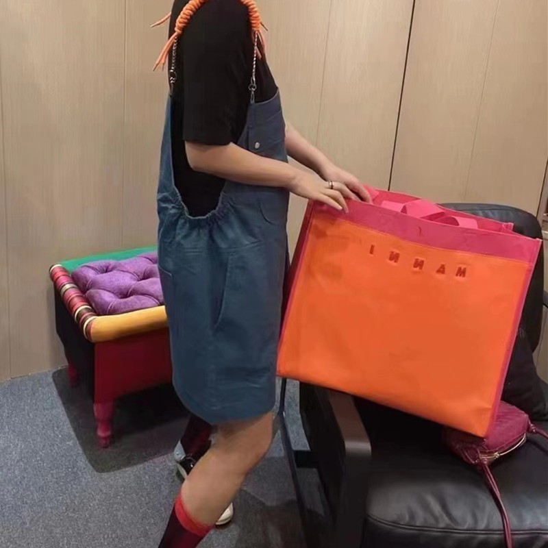 Letter Contrast Canvas Tote Shoulder Tote Bag