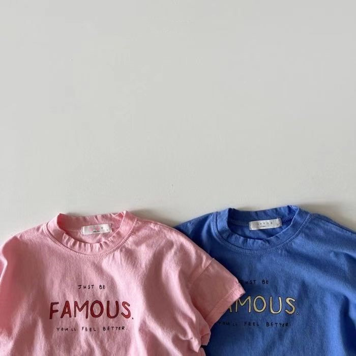 Color: blue famous short sleeve T-shirt, light Rose Red famous short sleeve t-shirt