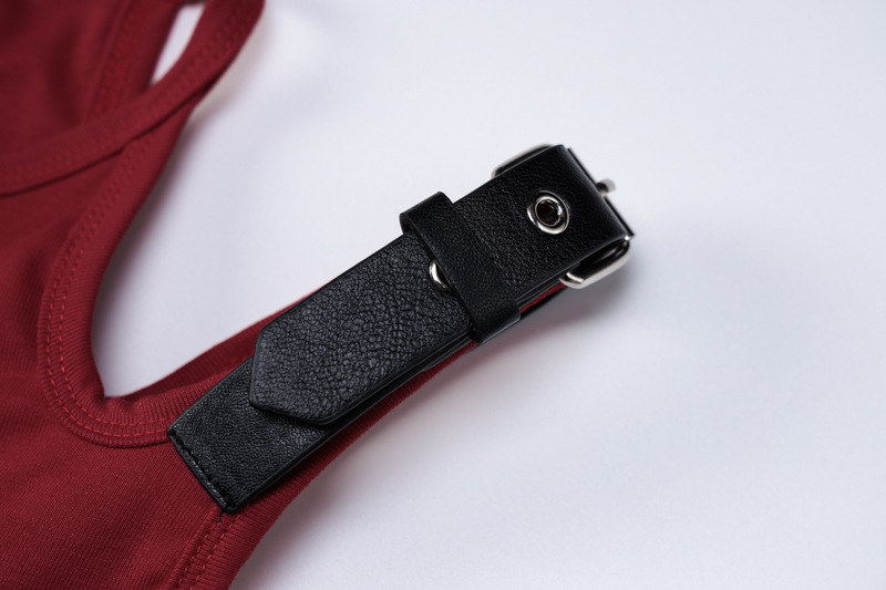 Color: red, leather stitching