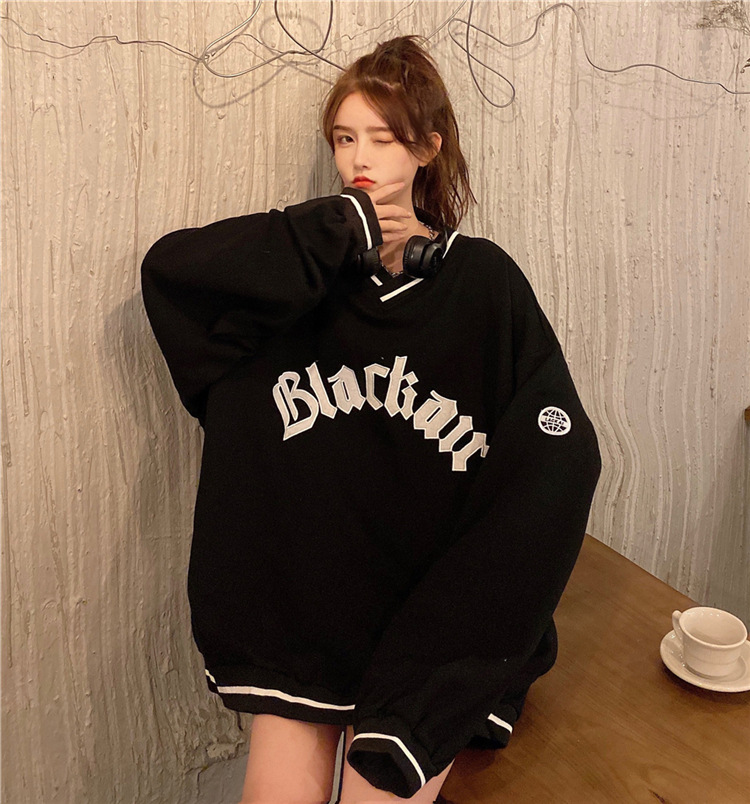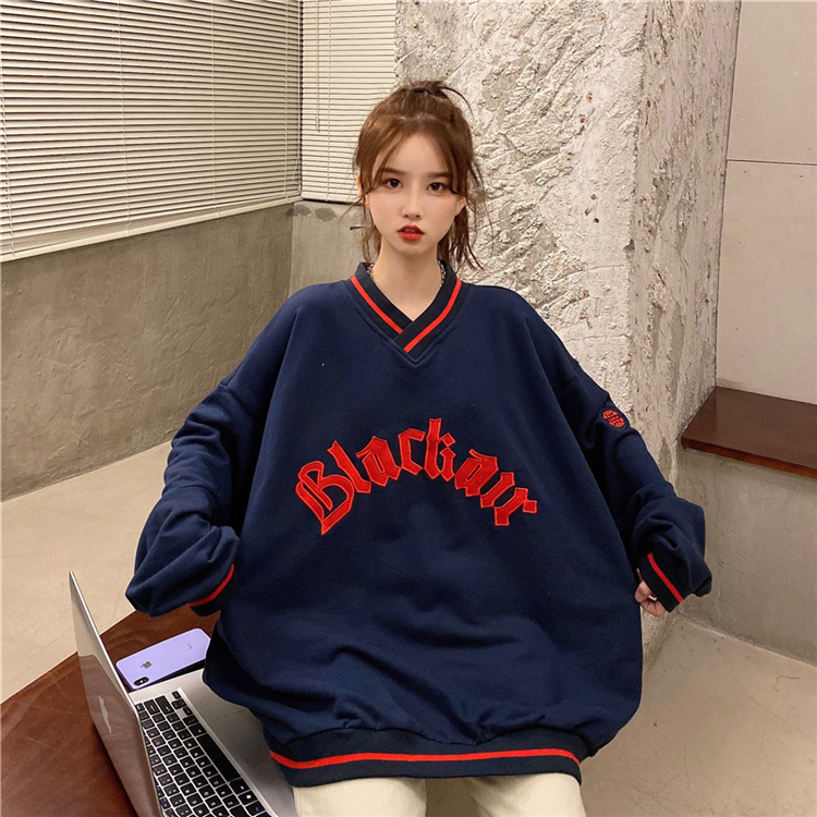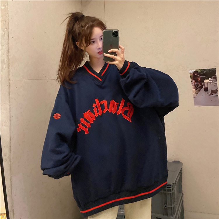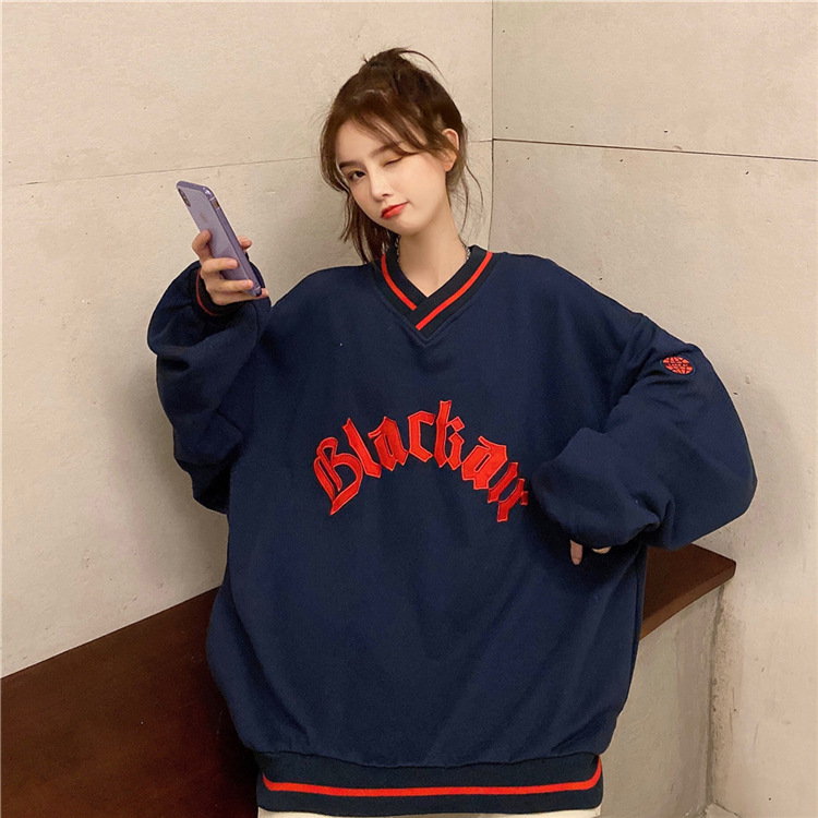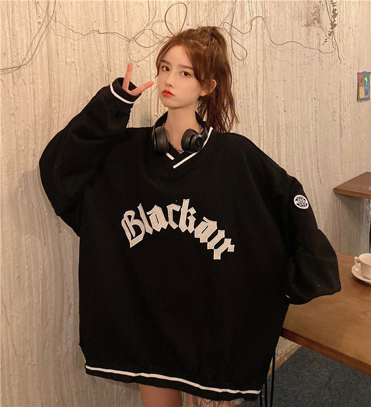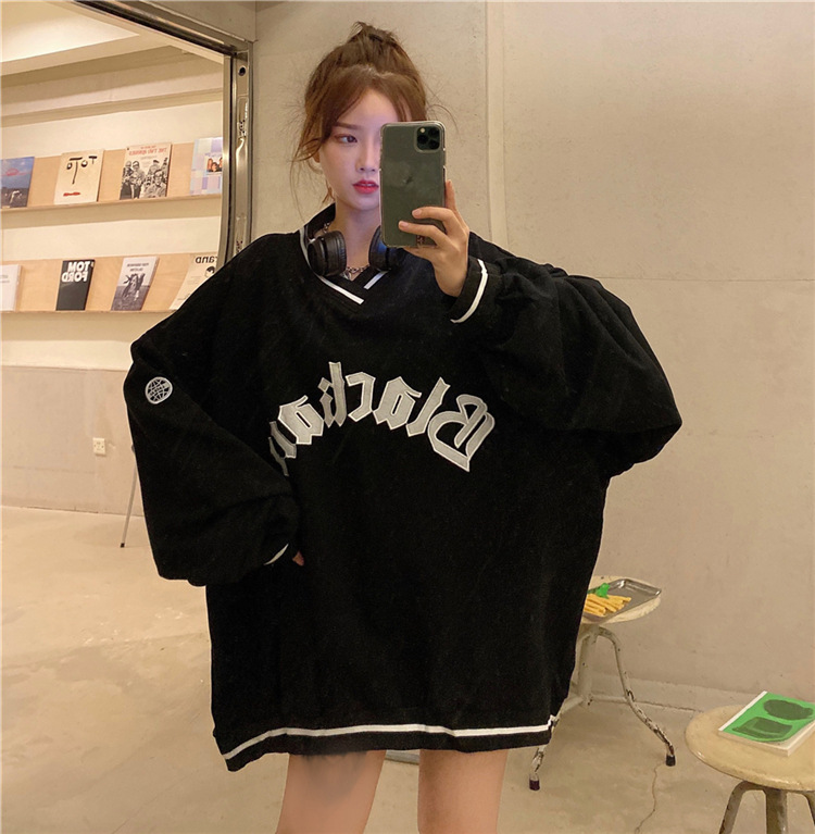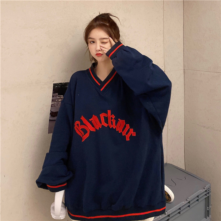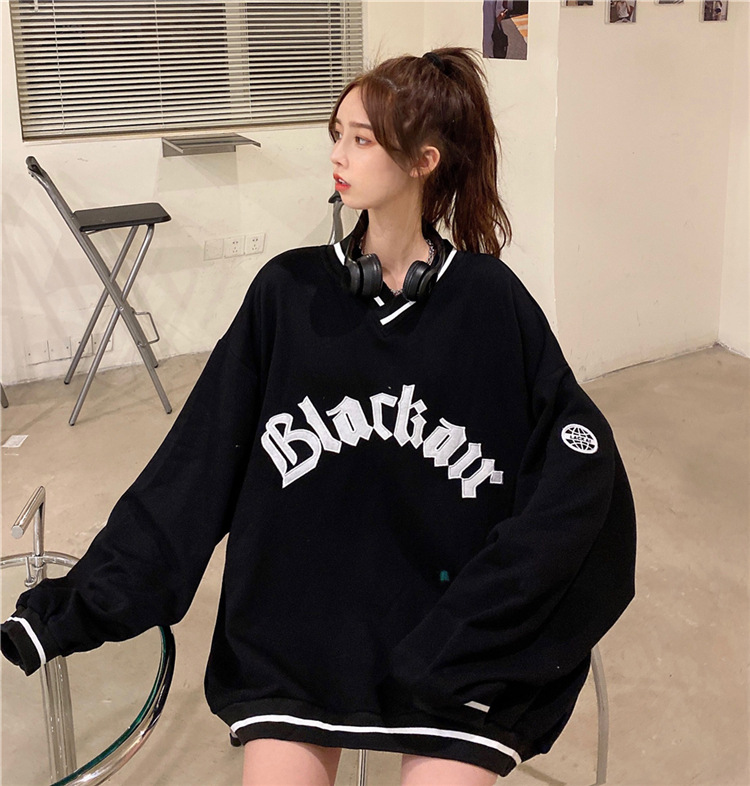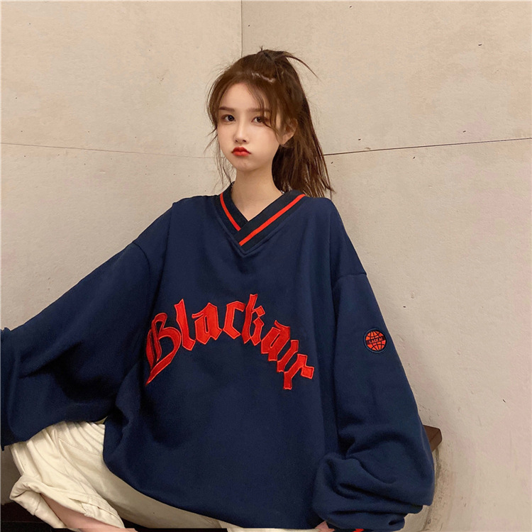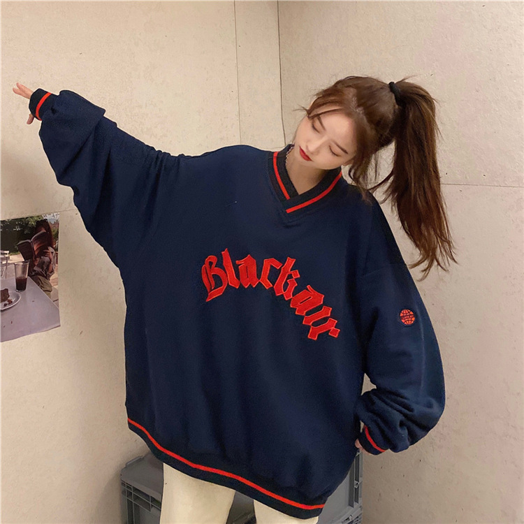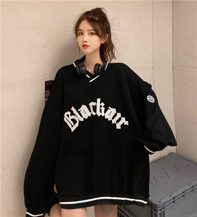 Letter Fleece Colorblock V-Neck Baseball Jacket Women's