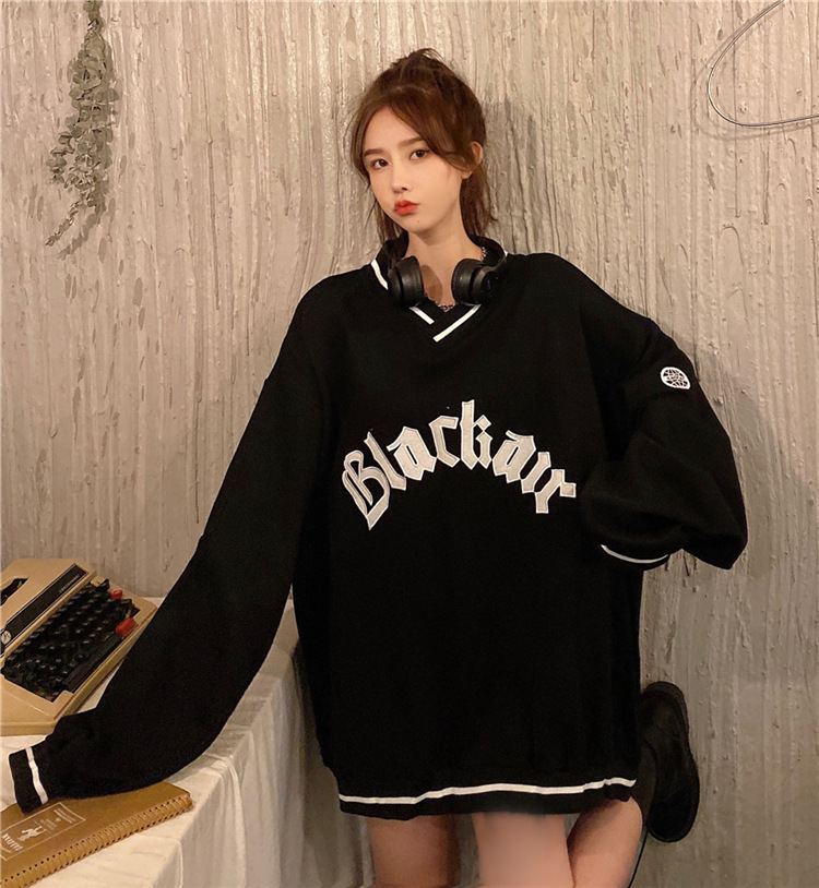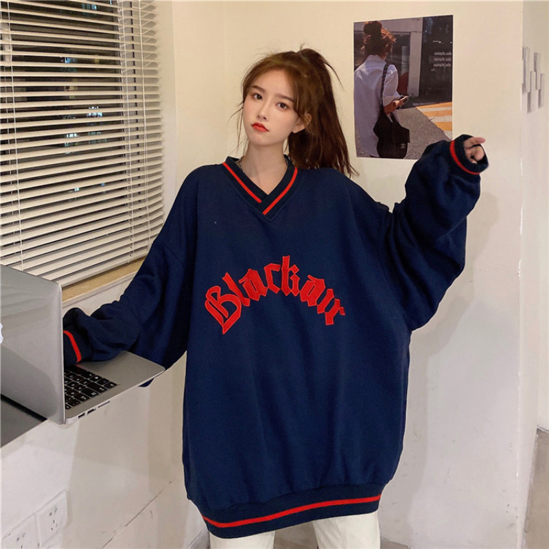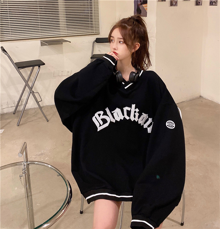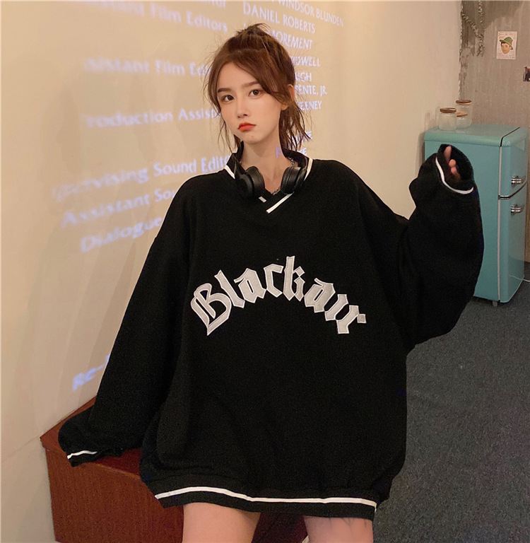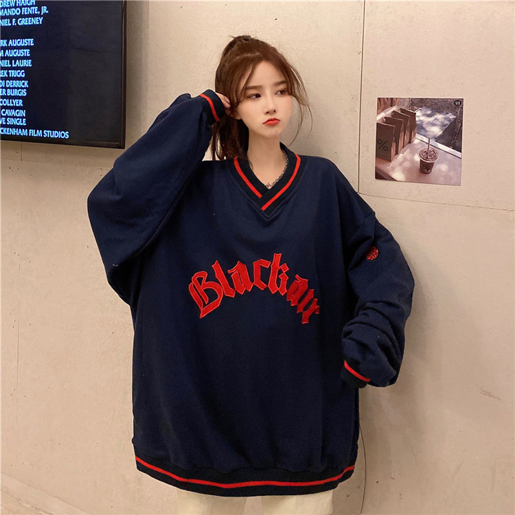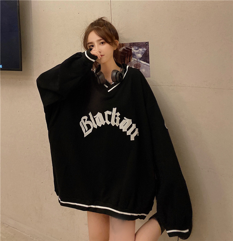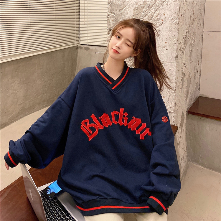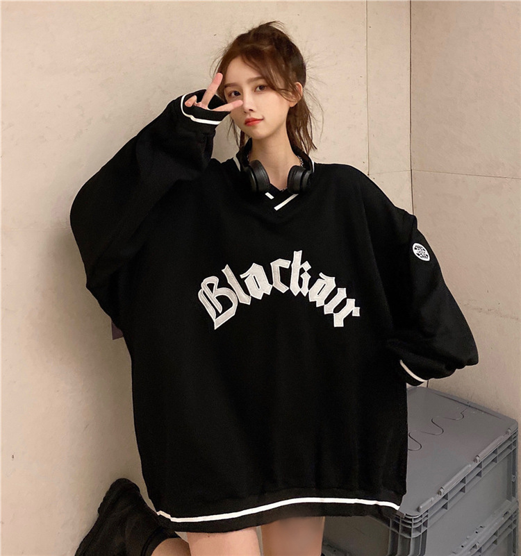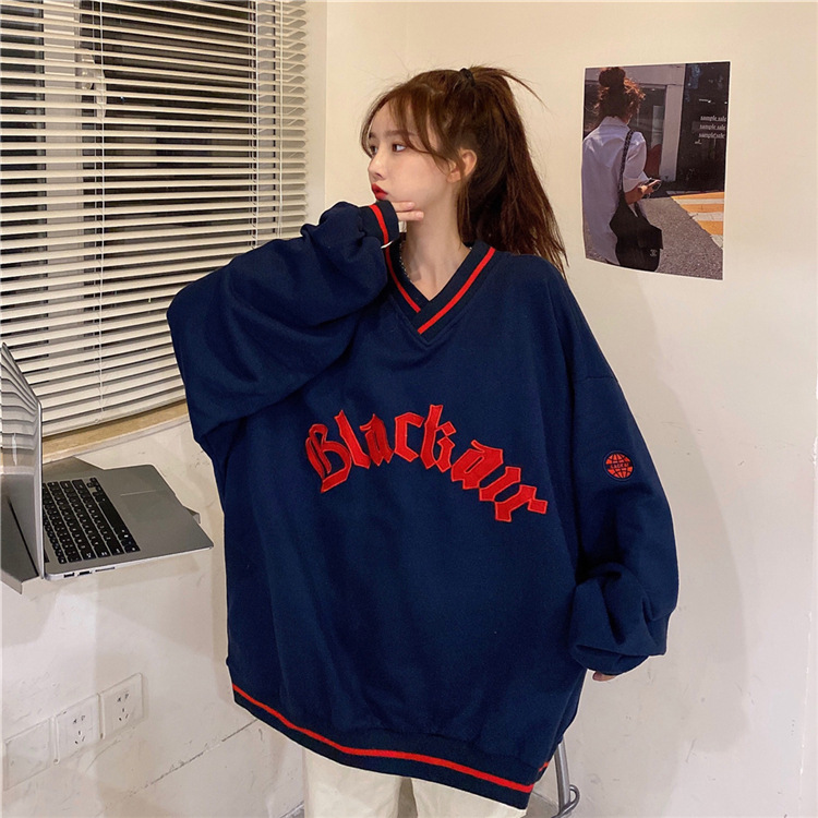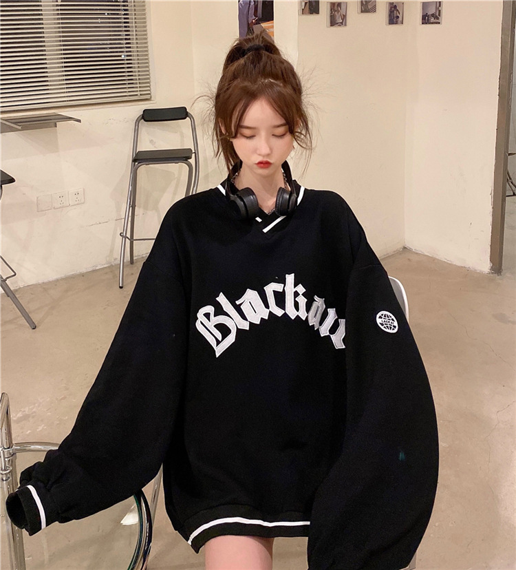 Letter Fleece Colorblock V-Neck Baseball Jacket Women's